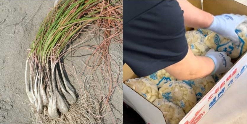 らっきょうの収穫作業、コンテナの交換作業、出荷調製作業 等