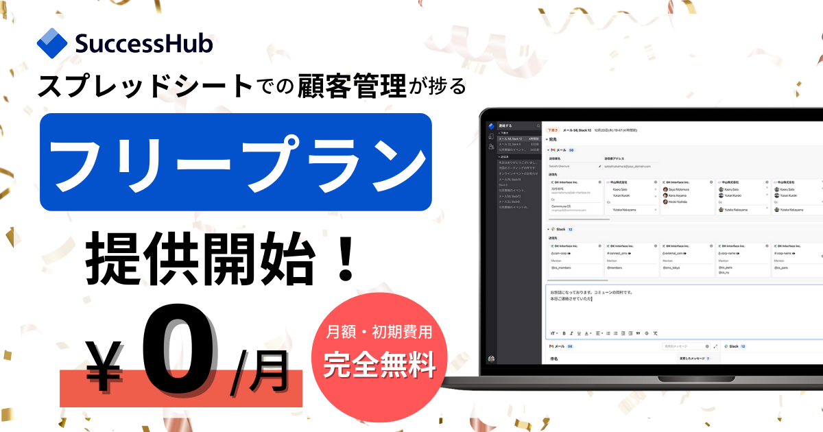 お客様へのアクションが最速で効率化する「SuccessHub」、スプレッドシートでの顧客管理が捗るフリープランを提供開始