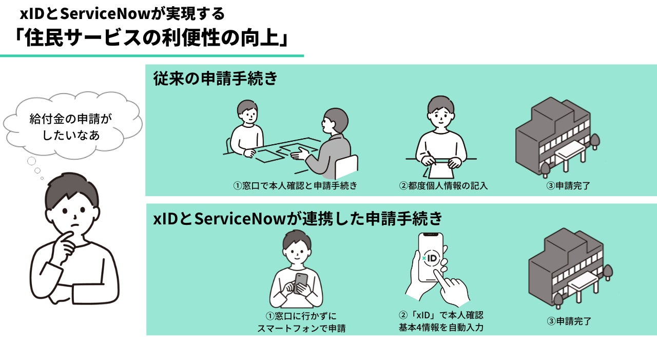 ServiceNowの「Now Platform」が提供する特長を活かしながら、マイナンバーカードと紐づいたデジタルID「xID」のさらなる利用機会の創出を目指し、自治体様に対して、「xID API」を活用した「Now Platform」のユースケースの創出を進めます。