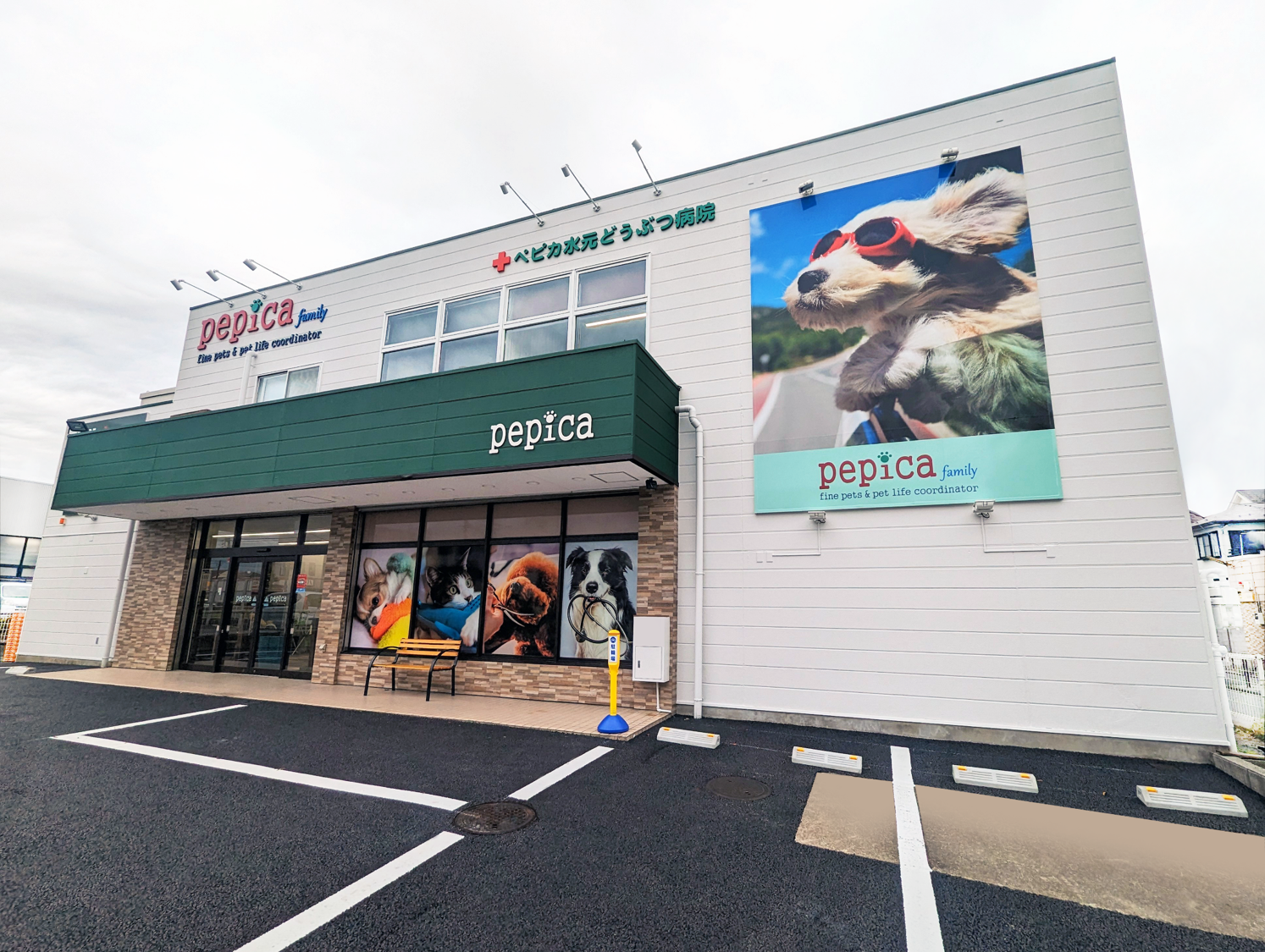 ぺピカファミリー水元店は、東京都葛飾区 水元公園近くにあるペットショップで、この度2Fにどうぶつ病院を新設し、グルーミングサロンには、お客様の要望にお応えした個室完備のグルーミングスペースを増設。ペットホテルも併設しており、シニア犬や猫を想定したセンシティブなペットにも対応できる、トータルケアペットショップとして全面改装しました。また1Fでは、専門店ならではのプレミアム商材を中心としたペット用品を取り揃え、知識と経験が豊富な専門スタッフが、お客様に寄り添い最適なペットライフをトータルサポートします。