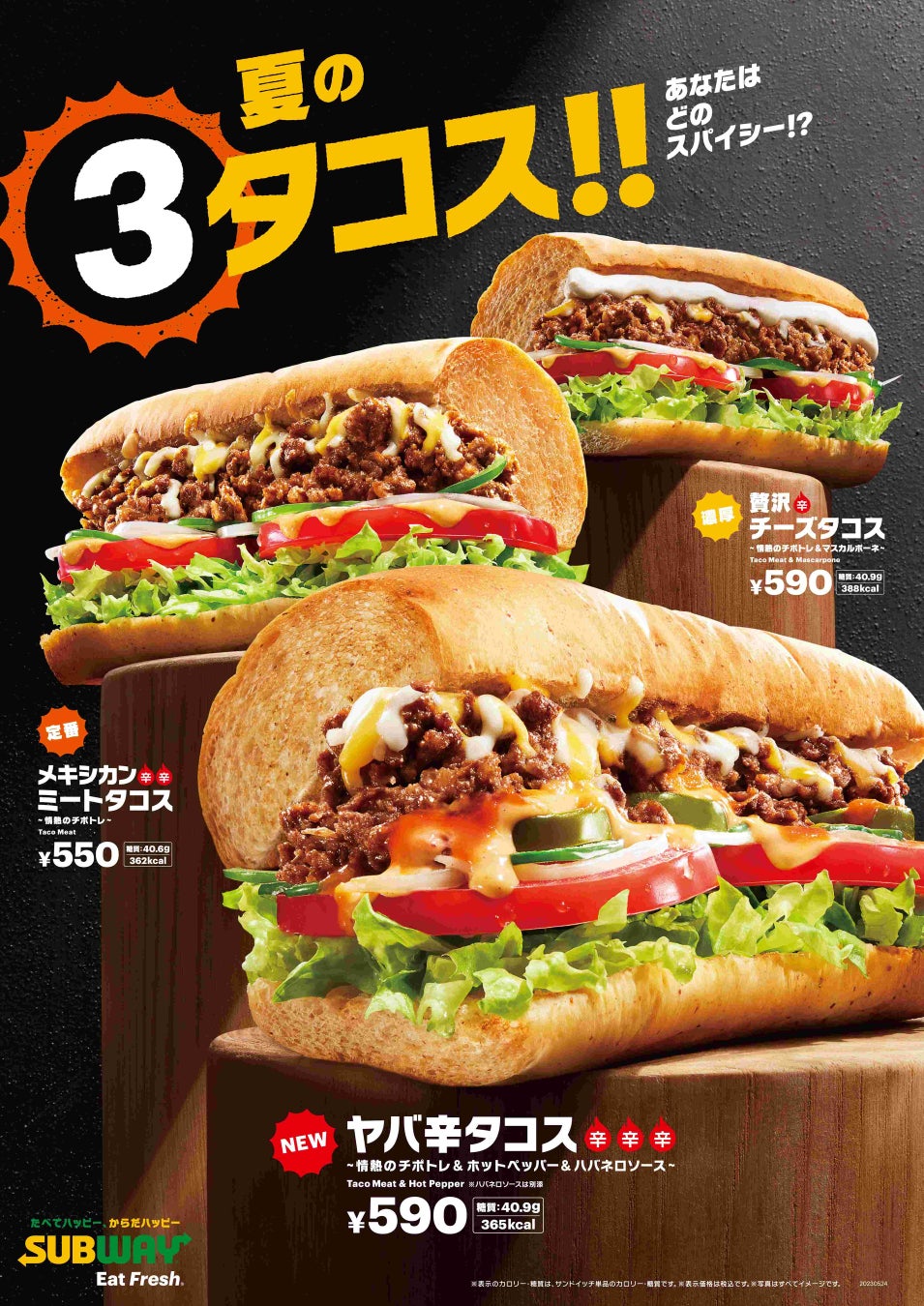 日本サブウェイ合同会社(本社:東京都品川区)が展開する サンドイッチ・チェーン『サブウェイ』は、2023年5月24日(水)から全国のサブウェイで『メキシカンミートタコス』『贅沢チーズタコス』『ヤバ辛タコス』を発売します。