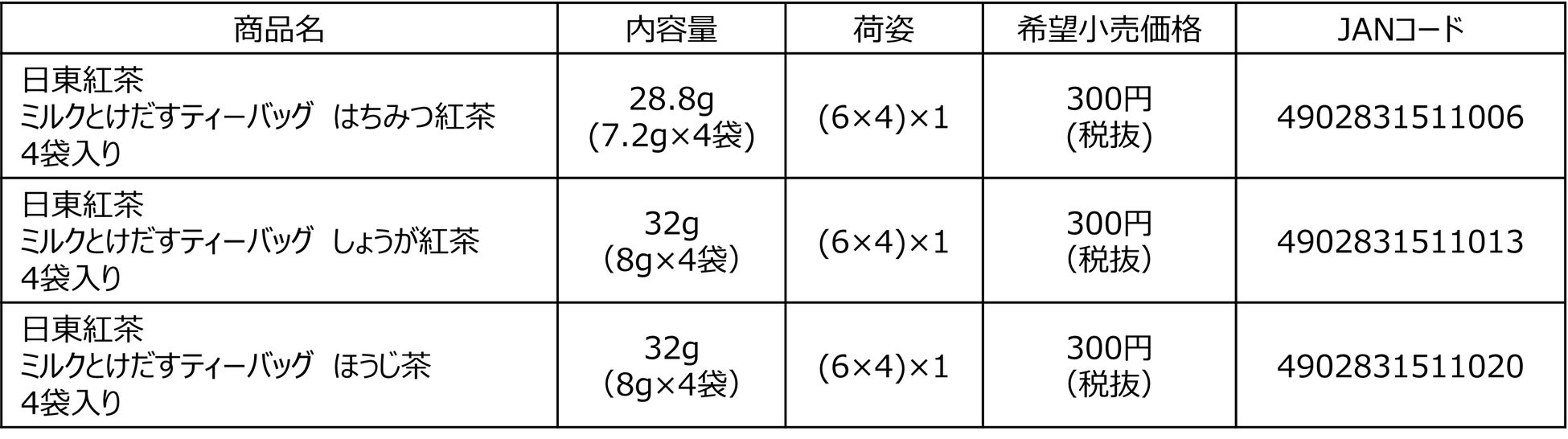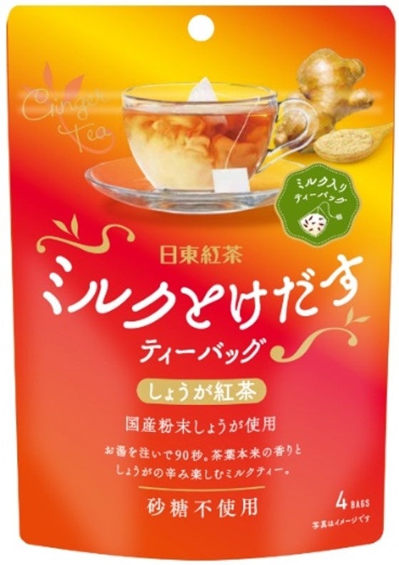 「日東紅茶 ミルクとけだすティーバッグ はちみつ紅茶4袋入り」「日東紅茶 ミルクとけだすティーバッグ しょうが紅茶4袋入り」「日東紅茶 ミルクとけだすティーバッグ ほうじ茶4袋入り」新発売