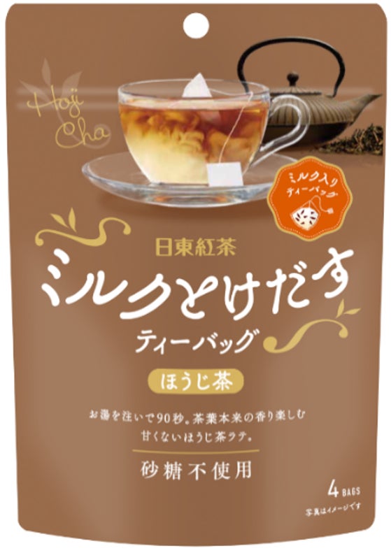 紅茶だけでなく「ほうじ茶」もミルクとけだすティーバッグシリーズのラインナップに仲間入り。ほうじ茶の芳ばしい香りはミルクとの相性も抜群です。国産ほうじ茶葉使用で、茶葉本来の香り楽しむ甘くないほうじ茶ラテに仕上げました。