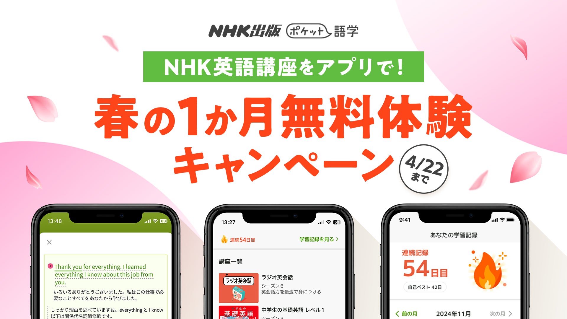 【本日スタート】 NHK英語講座をアプリでもっと手軽に! NHK出版アプリ「ポケット語学」春の1か月無料体験キャンペーンを開始