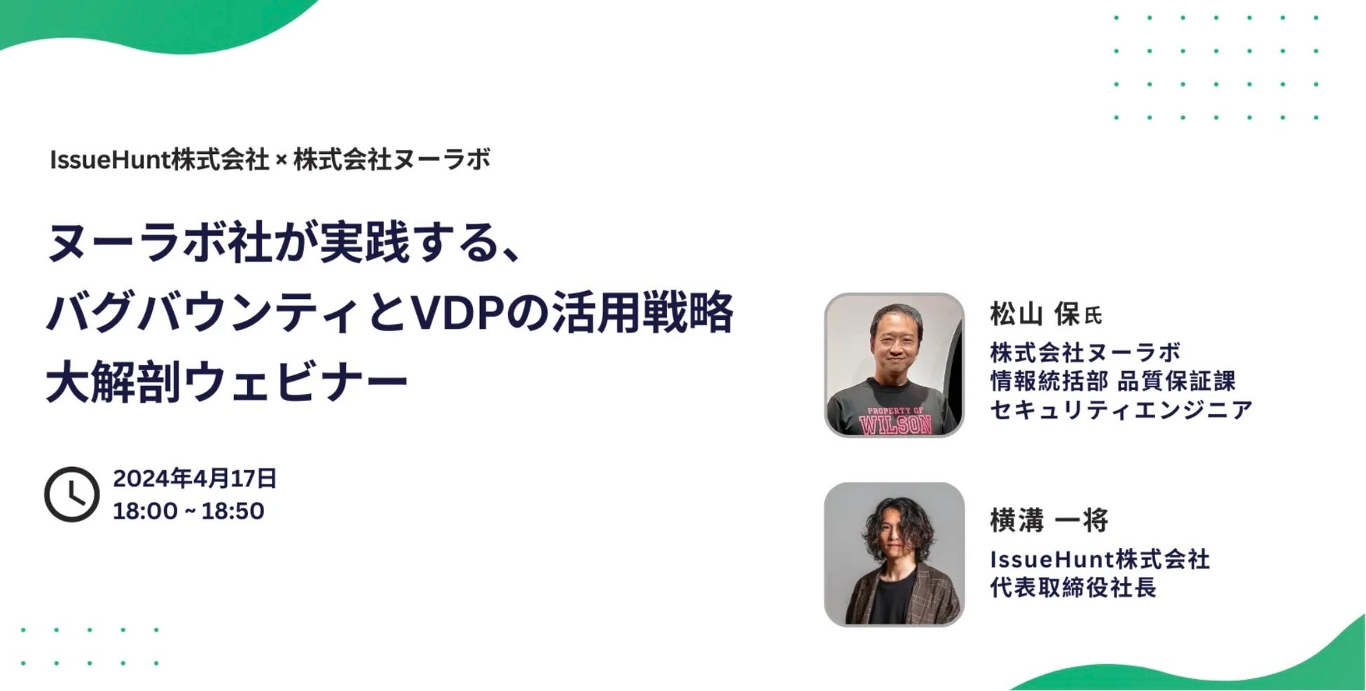 「ヌーラボ社が実践する、バグバウンティとVDP(脆弱性開示プログラム)の活用戦略 大解剖ウェビナー」を4月17日に開催予定