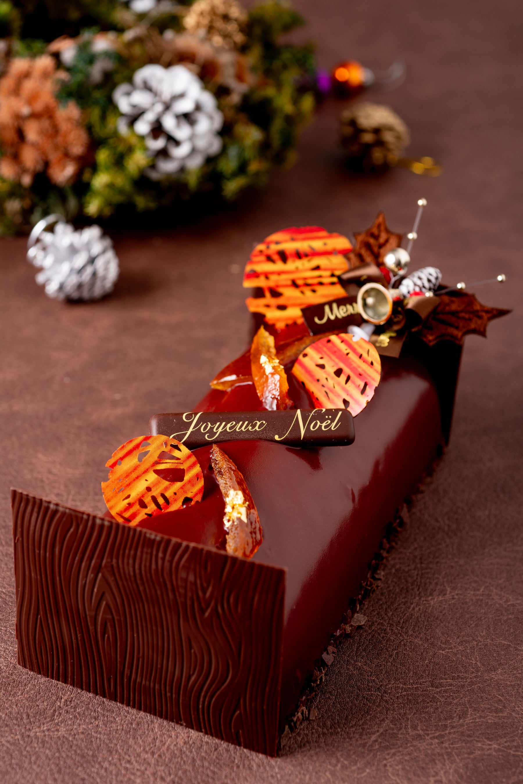 フランスでも大人気の「タルトショコラ」「ダックワーズ」に加え、限定の「ビュッシュ・ド・ノエル オランジュ」の3種のクリスマスケーキ