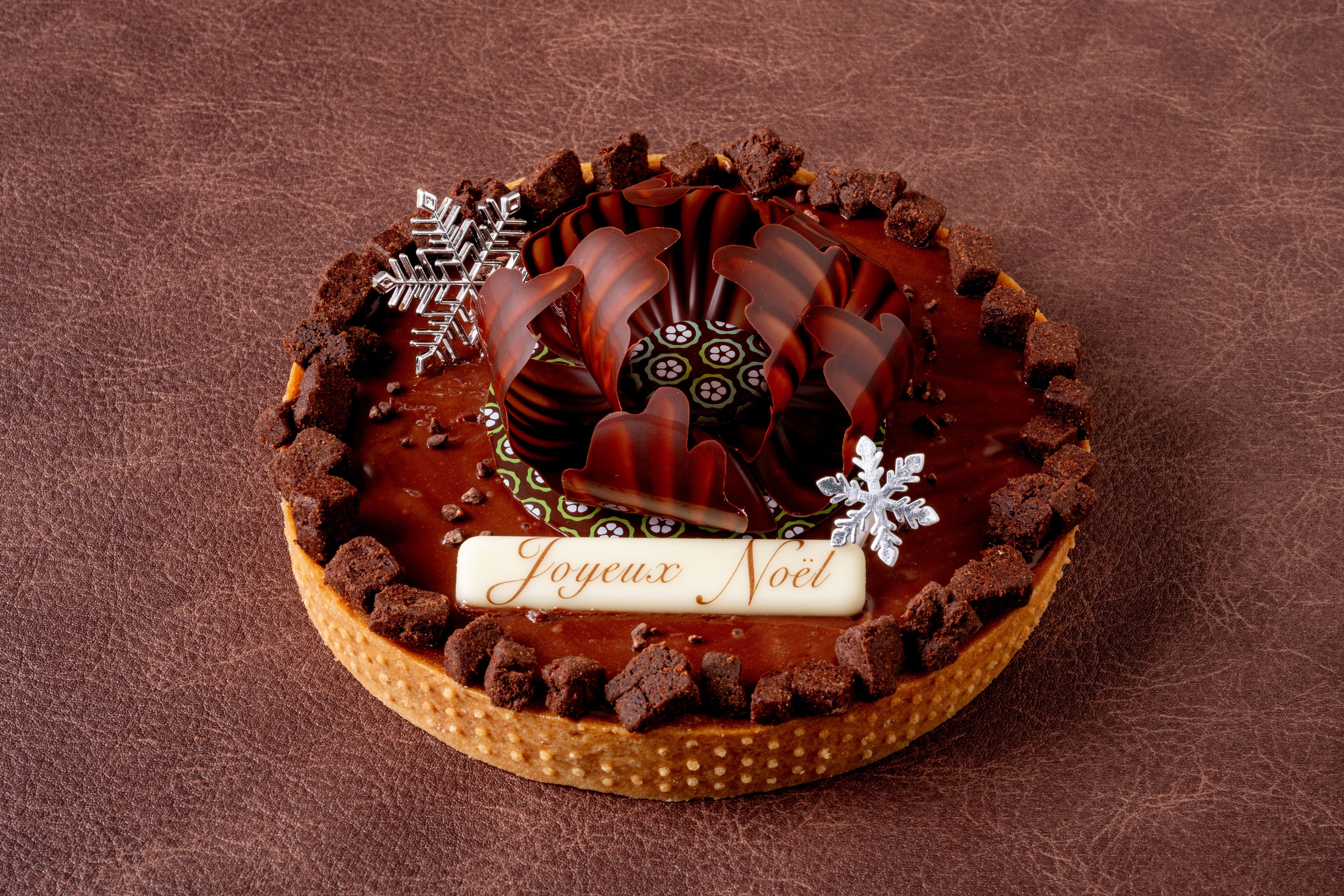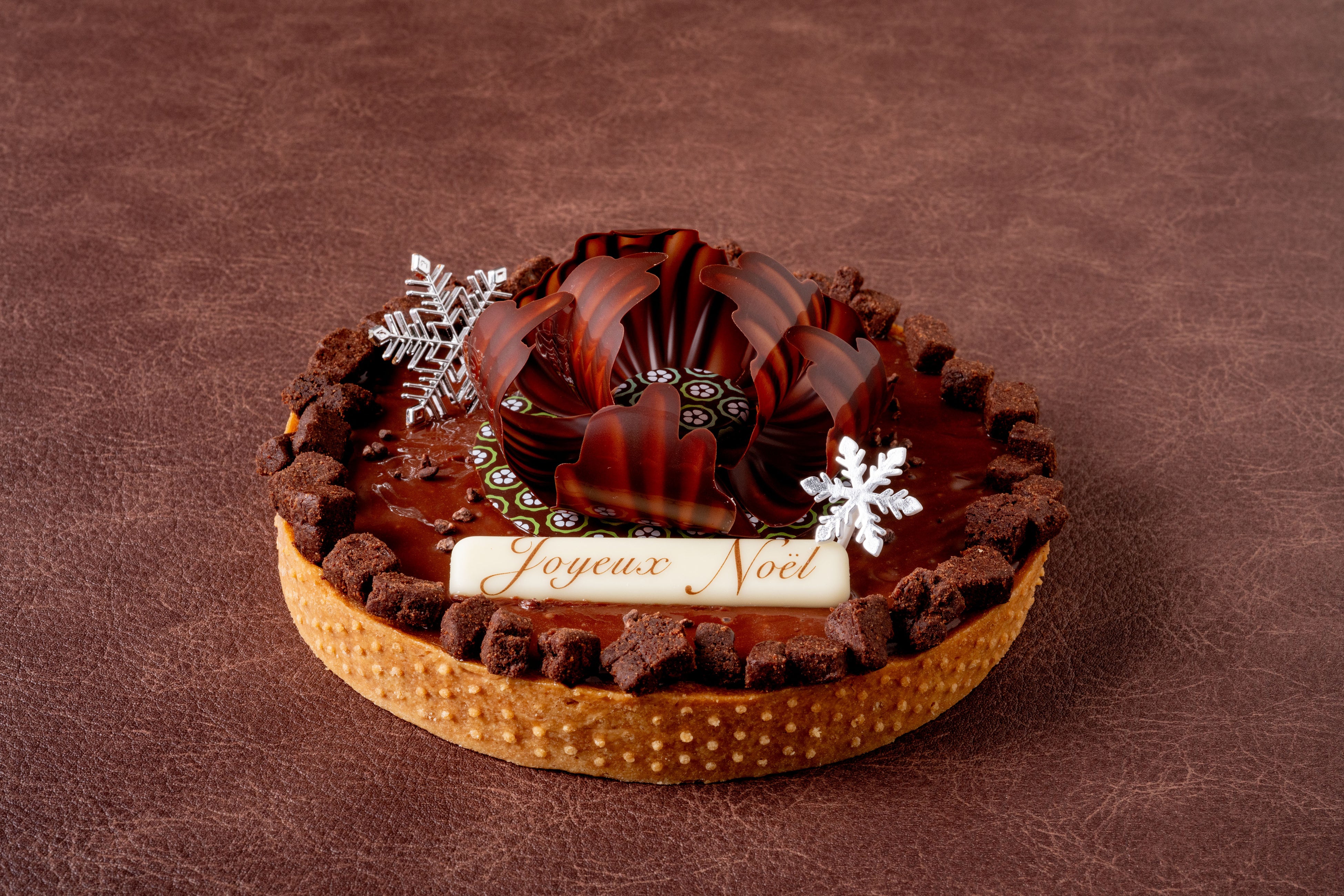 フランス本店でも代表的な人気メニュー「タルトショコラ」。取り分けやすい形にリニューアルしました。サクサクしたタルトやシュトロイゼルカカオにオリジナルチョコレートを使用したなめらかなガナッシュノワール。花型のチョコレートやノエルのプレートでクリスマス限定のケーキに。