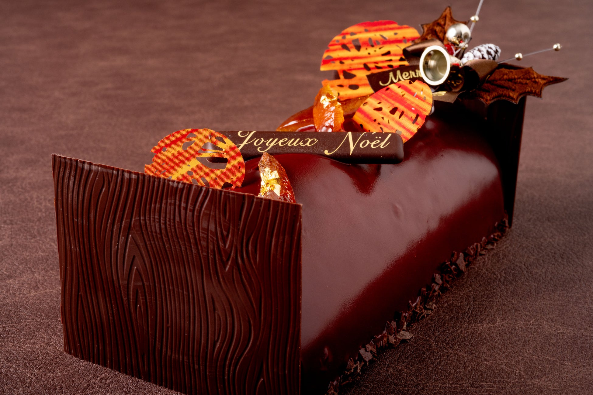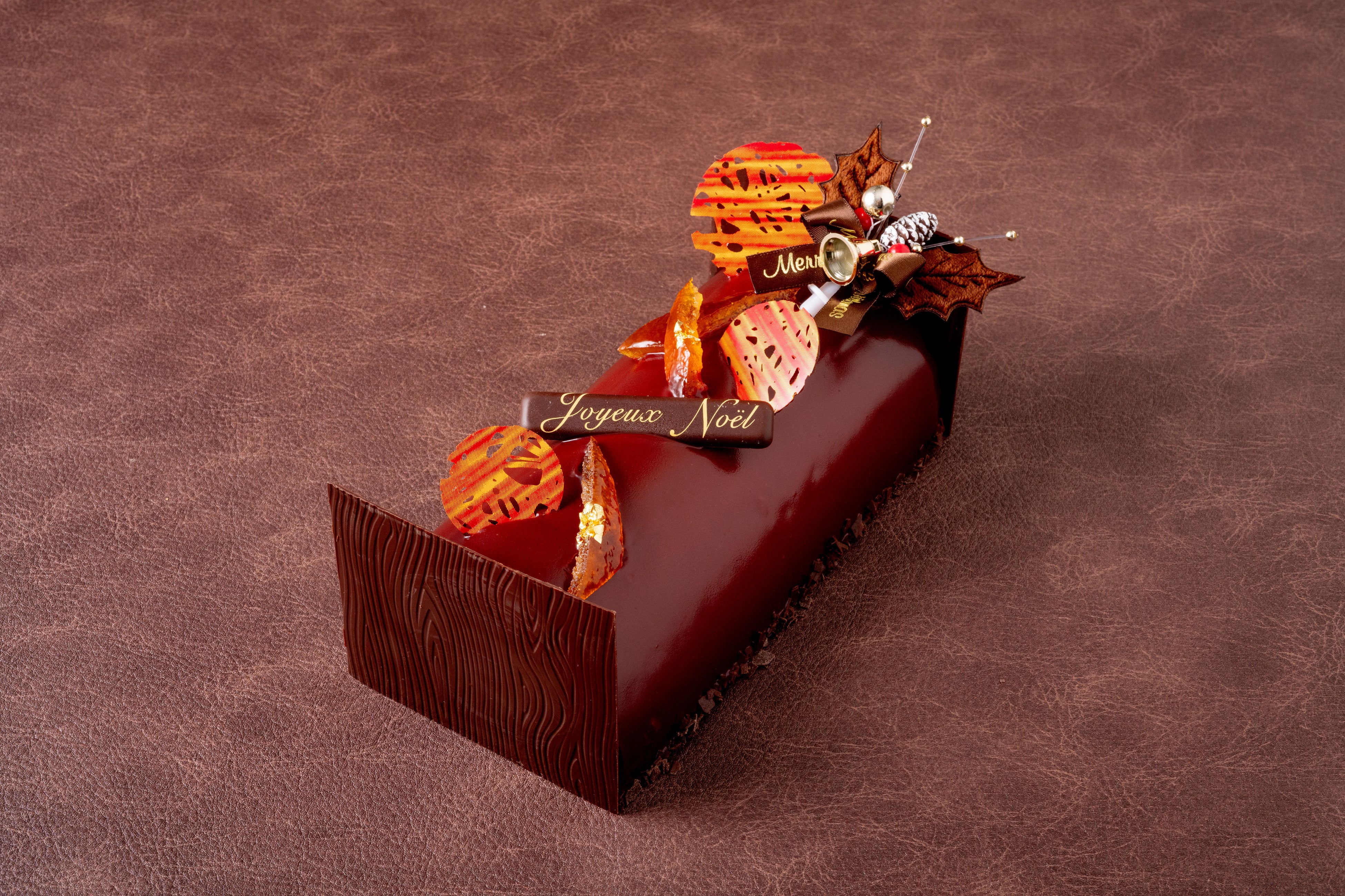 甘さを控えたムースショコラにビスキュイショコラ、ジュレオランジュを幾層に重ね、金箔であしらったオレンジピールにより華やかな香りを加えています。また、シートショコラによりパリッとした食感もあり、子供から大人まで食べやすいオレンジが香るショコラケーキです。
