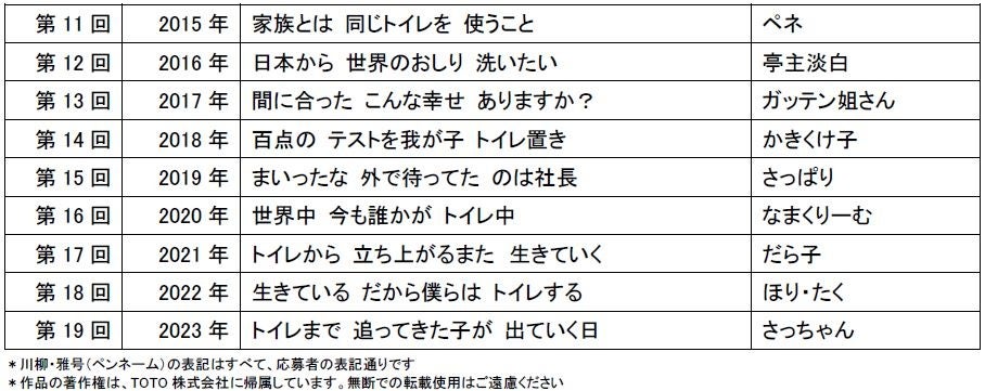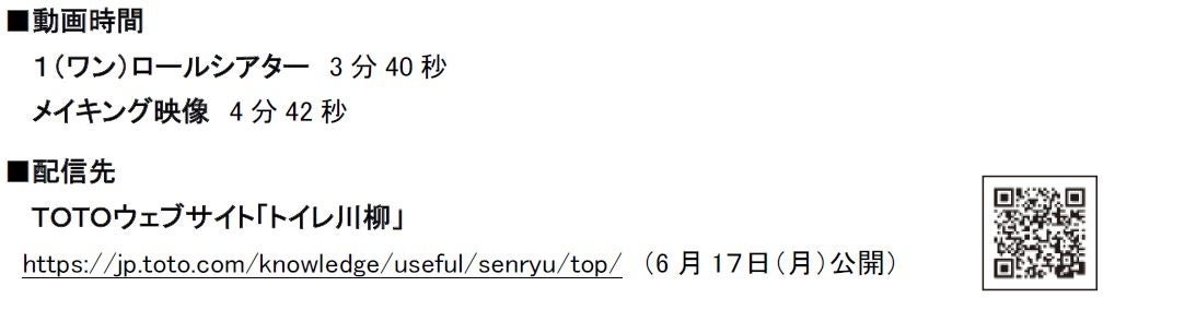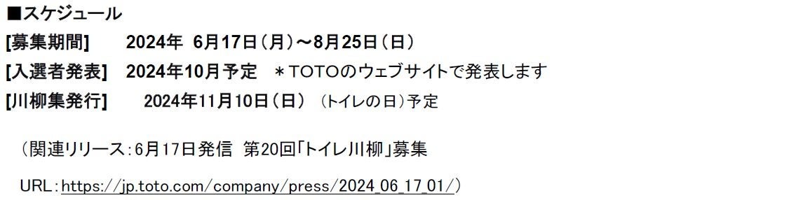 (関連リリース:6月17日発信 第20回「トイレ川柳」募集 URL:https://jp.toto.com/company/press/2024_06_17_01/)