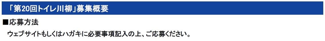 〒101-8977 日本郵便 神田郵便局留 「TOTOトイレ川柳」係