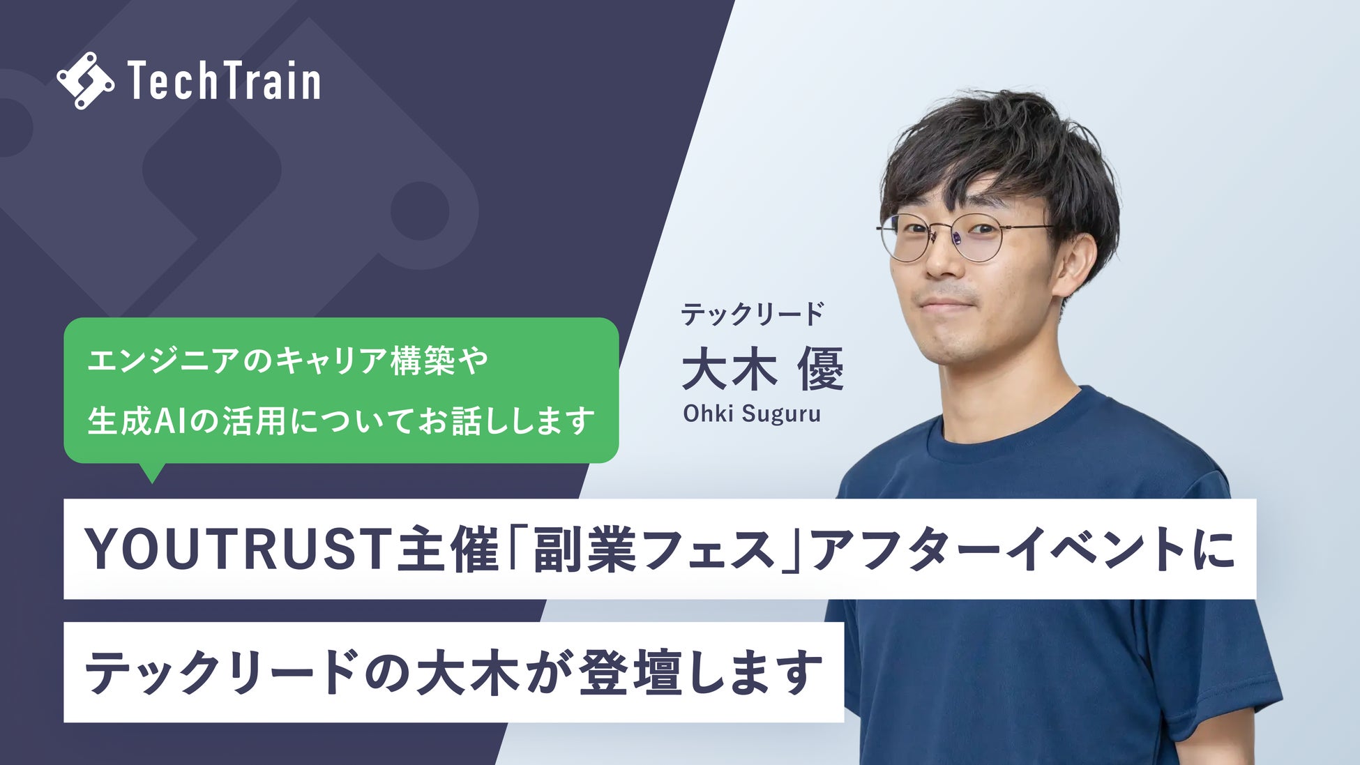 株式会社TechBowlは、株式会社YOUTRUST主催の人気イベント「副業フェス」のアフターイベントに、同社エンジニアテックリードの大木優が登壇することをお知らせいたします。本イベントは2025年3月21日(金)19:30より、YOUTRUSTオフィスにてオフライン限定で開催されます。