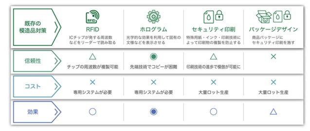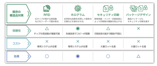 従来のトレーサビリティでは、HyperJシール自体の偽造や、アクセスした先のサイトが不正サイトなどのリスクがありました。また、ブロックチェーンを使った真贋システムは高コストで実用化が困難でしたが、リーガルテック社の新技術は低コストでブロックチェーンを活用した自社専用の真贋判定システム構築が可能になりました。