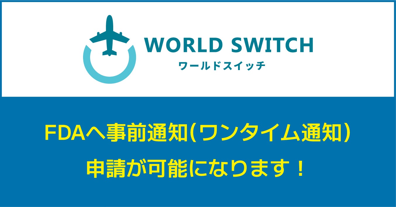 WORLD SWITCHからFDAへ事前通知(ワンタイム通知)が可能になります