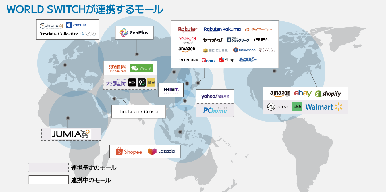 「WORLD SWITCH」は一括出品・受注、買取管理・在庫連携を備えた、簡単に複数モール管理ができる中古品業者特化型ECショップ一元管理システムです。各作業での時間短縮、業務の現状を劇的に改善し効率化することで、ショップの売上・利益の向上を図ります。