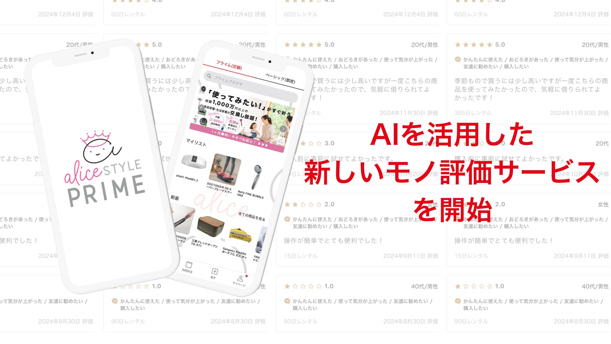 シェアリングプラットフォームを提供する株式会社アリススタイル(本社:東京都港区、代表取締役:村本 理恵子 以下、アリススタイル)は、2025年春よりサービス内に蓄積された数十万件のレビューをAIで解析し、より信頼性の高い購買支援を提供する「AIモノ評価サービス」を開始いたします。