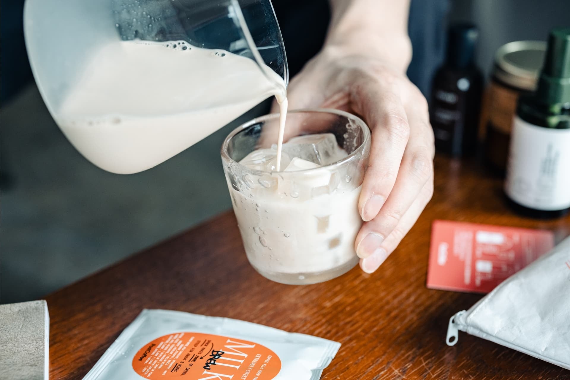 コーヒー粉をパック詰めしたものをミルクに浸け込み、長時間ゆっくりと抽出したドリンク。カフェラテでもカフェオレでもなく、ミルクブリュー特有の濃厚な甘さが特徴で、スイーツ感覚で楽しめます。作り方も簡単に誰でも手軽にできるため、コーヒー初心者の方などにもおすすめ。