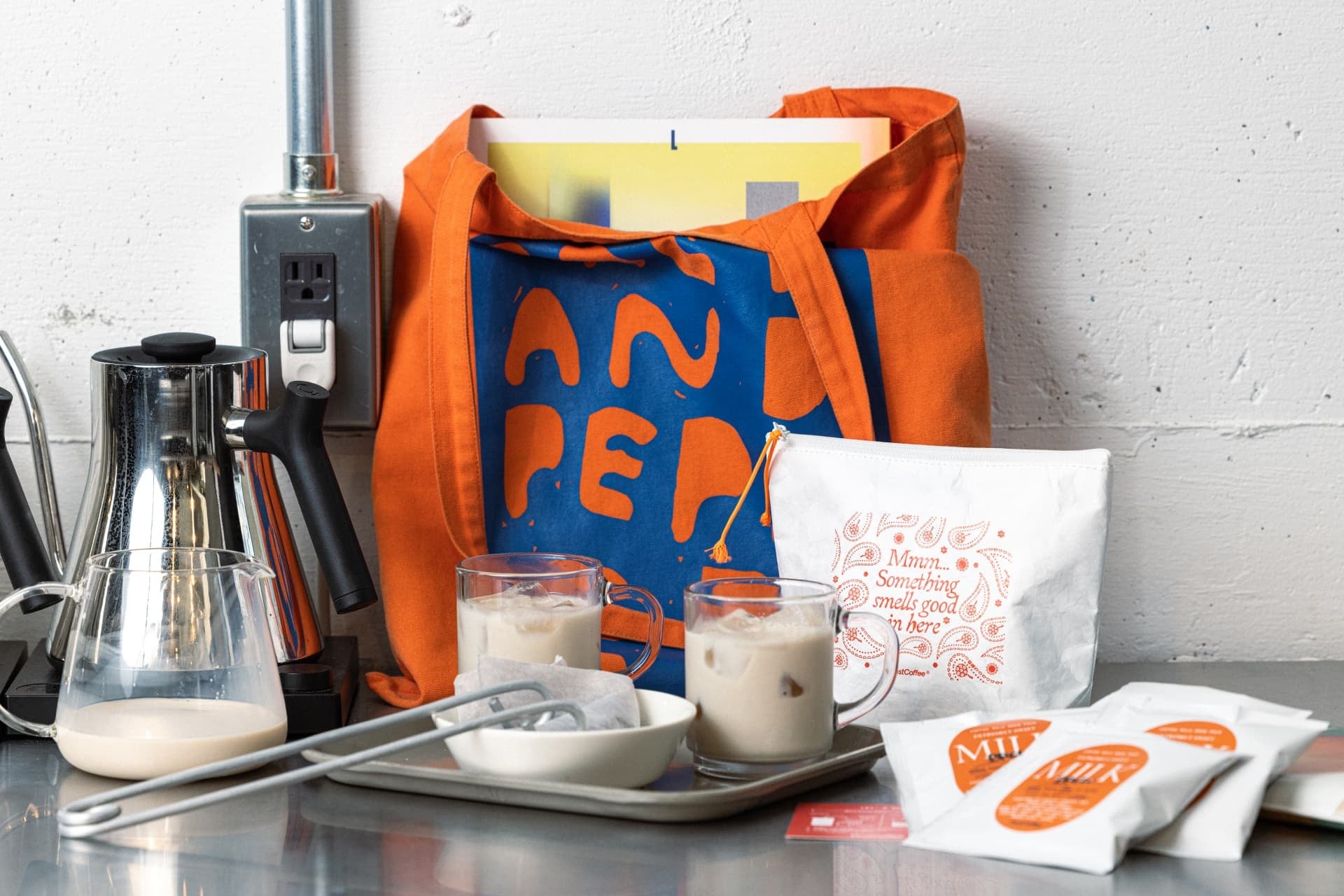 ペイズリーグラフィックの特製ポーチとMILK BREW PACKをセットでお届け。