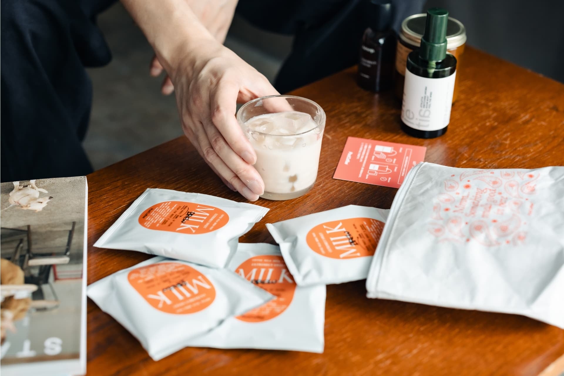 風味豊かなスペシャルティコーヒーで作るミルクコーヒーこそ、もっと気軽に、もっとたくさんの人たちに楽しんでもらいたい。そんな思いからミルクに “ちゃぽん” と浸けるだけで誰でも簡単に、美味しいミルクコーヒーが味わえる「MILK BREW PACK」をつくりました。