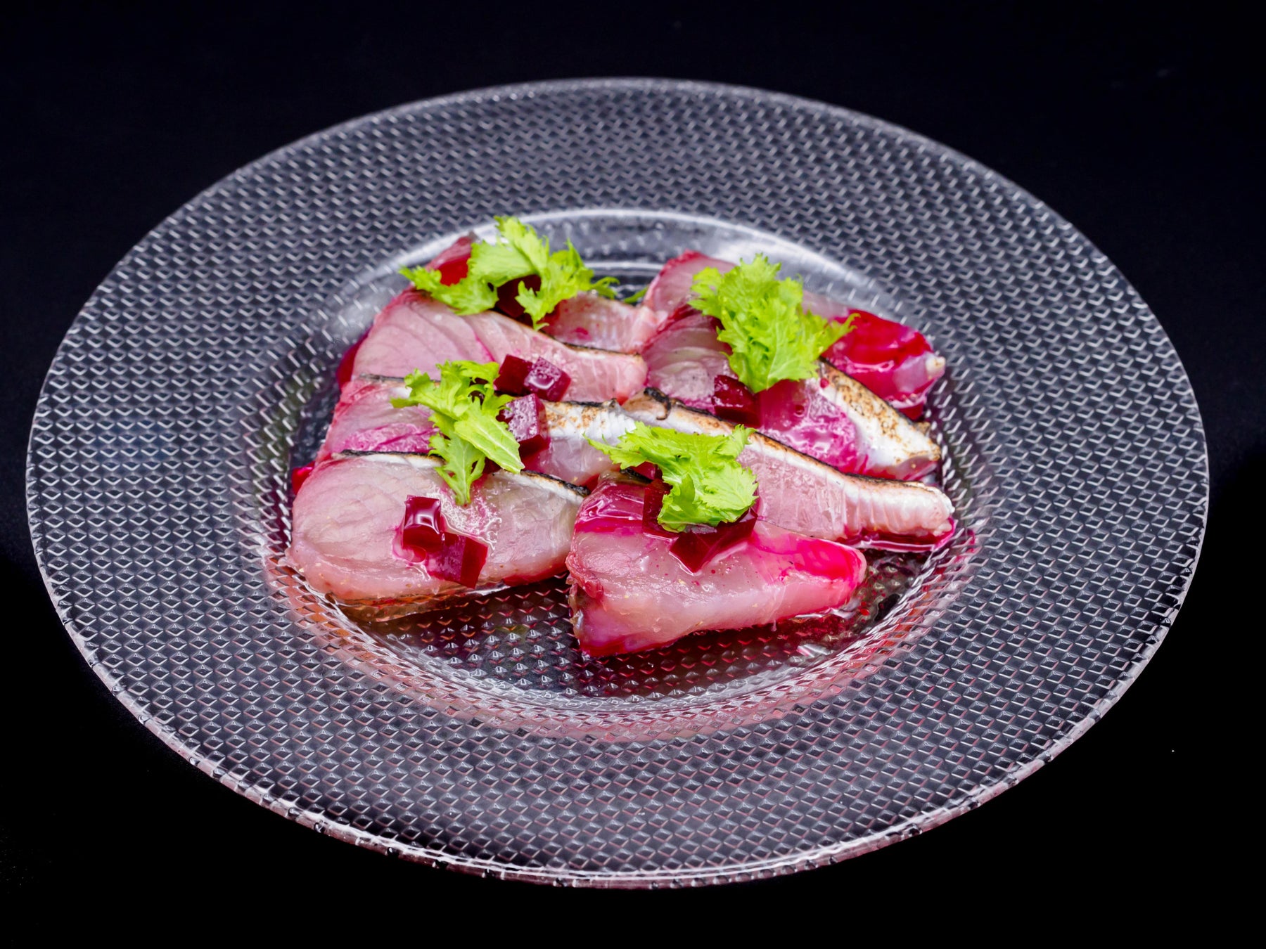 鰆の炙りカルパッチョ ビーツのヴィネグレット