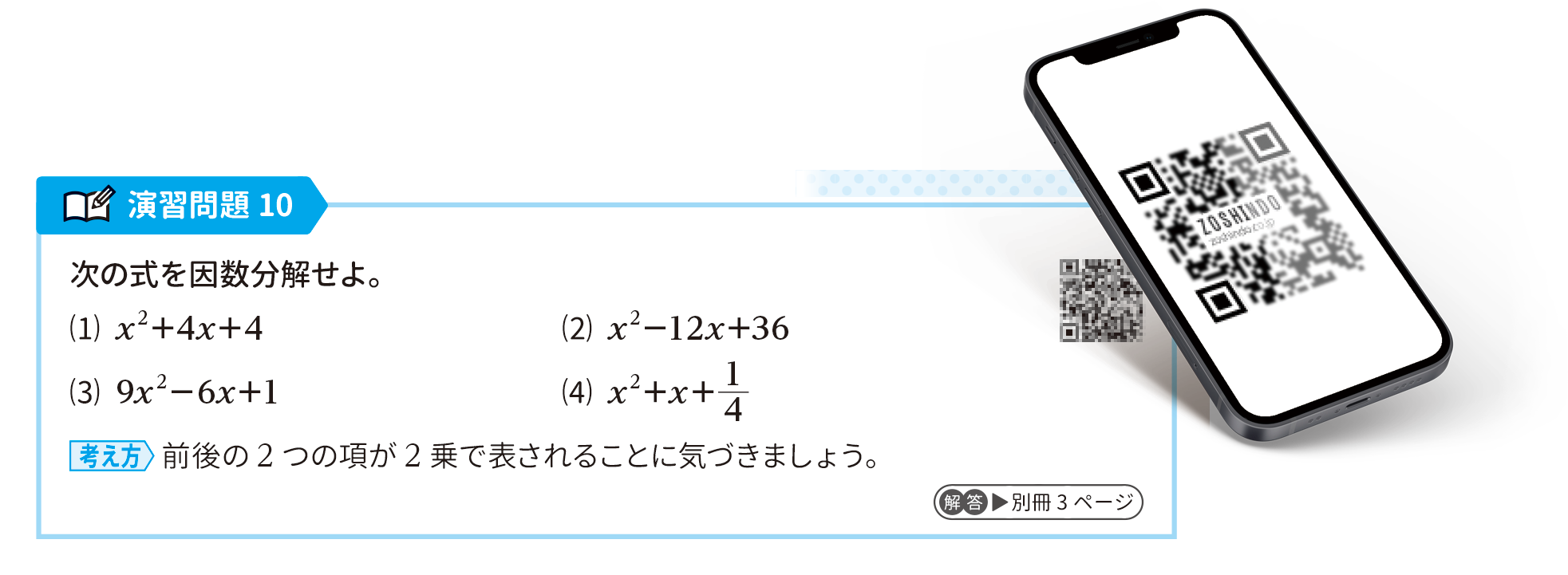 紙面のQRコードから解説動画にジャンプ。スマホやタブレットがあれば、疑問に思ったときにすぐに動画を視聴、疑問やつまずきを解消しながら学習できます。