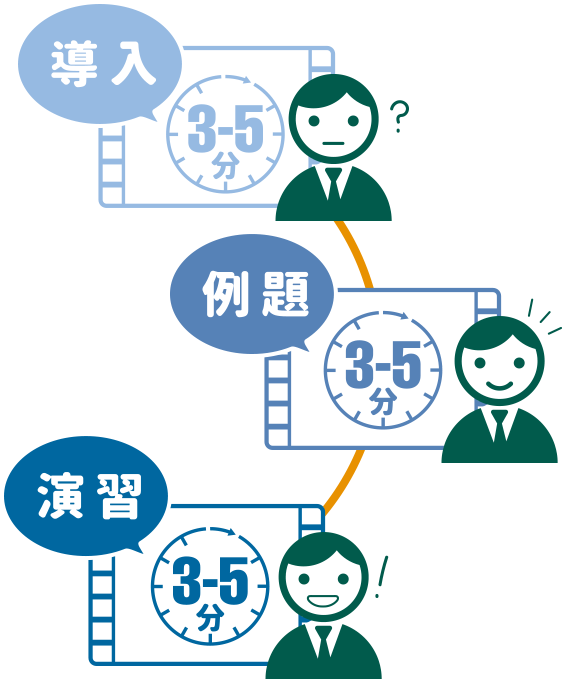 1本の解説動画は3~5分程度で要点をしっかり理解できるように工夫しました。 疑問に思った部分の動画を、ピンポイントで視聴でき、わからない部分だけを何度も見返すことで、時間がなくても効率的に学習できます。