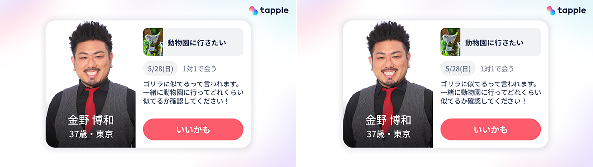 「僕は既婚者ですけど、独身の時にこんなアプリがあるといいなと思いました。生まれ変わって独身だったらタップル使いたいと思います!」