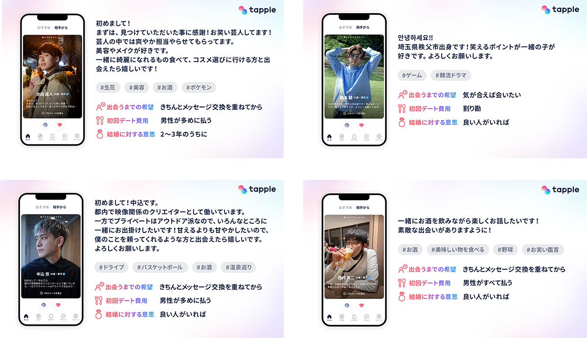 今後も「タップル」では「恋愛総量の最大化」を目指し、自分らしい恋活・婚活をお楽しみいただけるよう、さまざまな企画を行ってまいります。