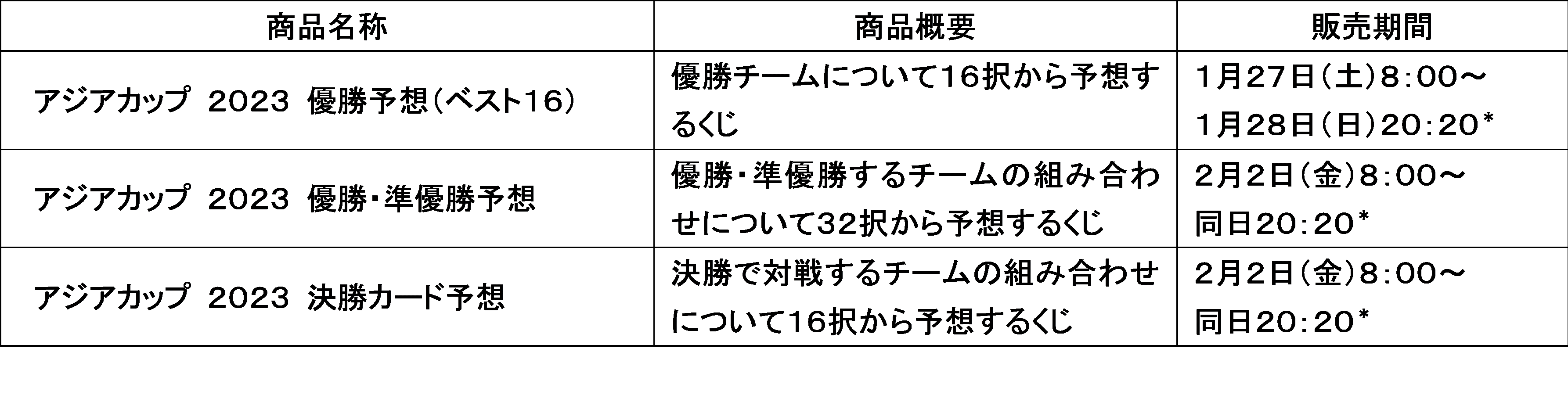 サッカーアジアカップを対象とした「WINNER」の販売予定