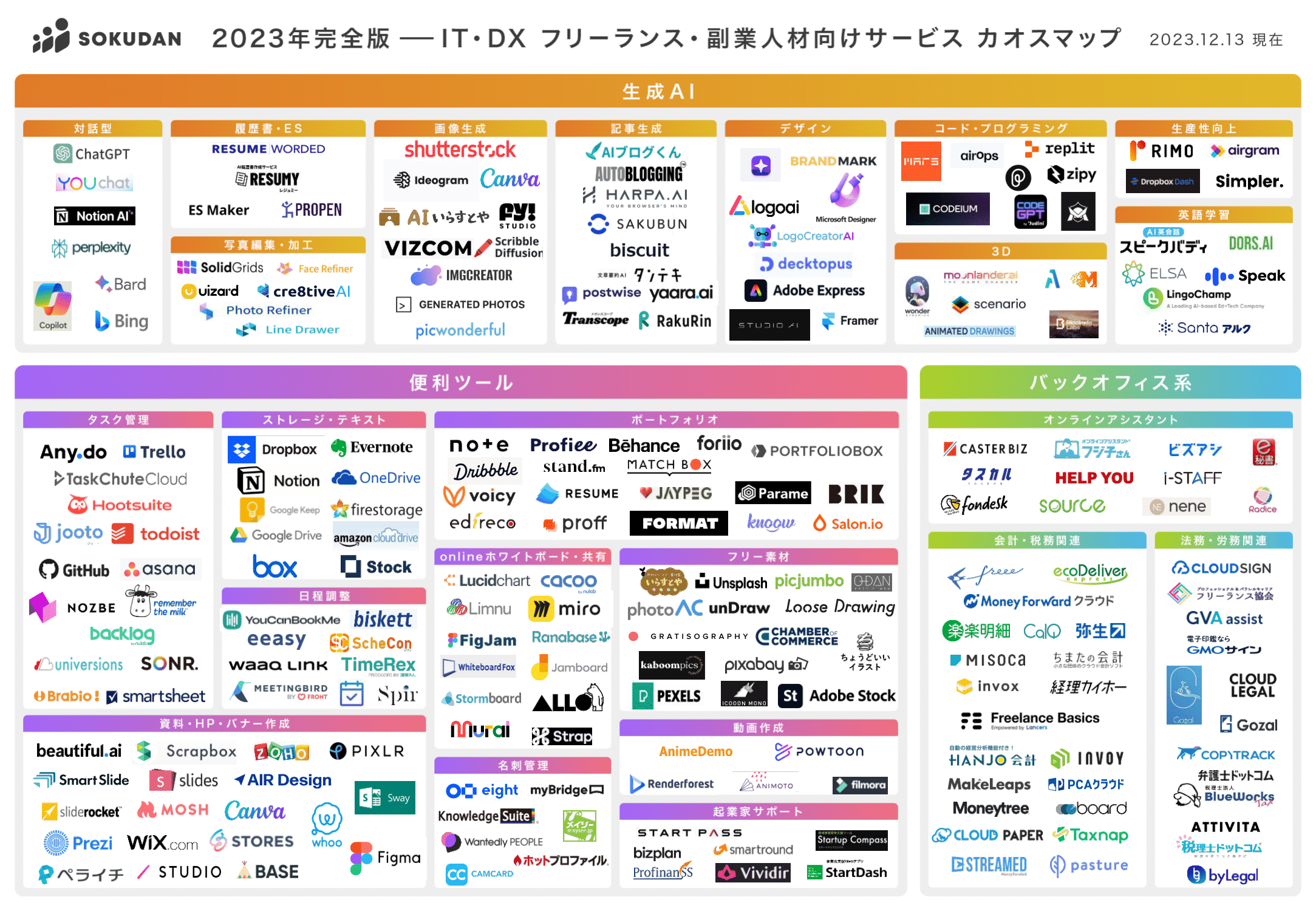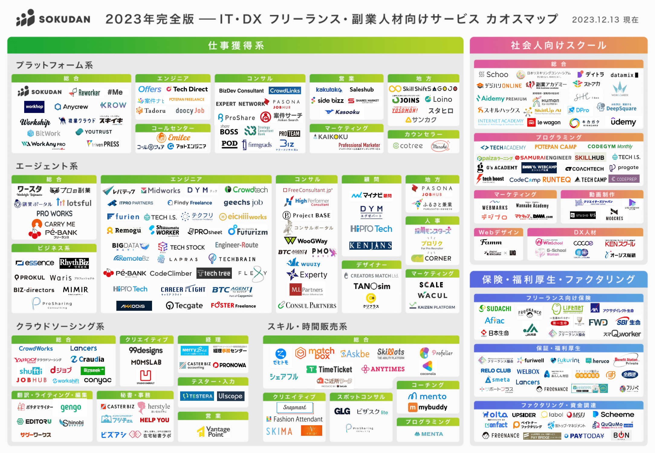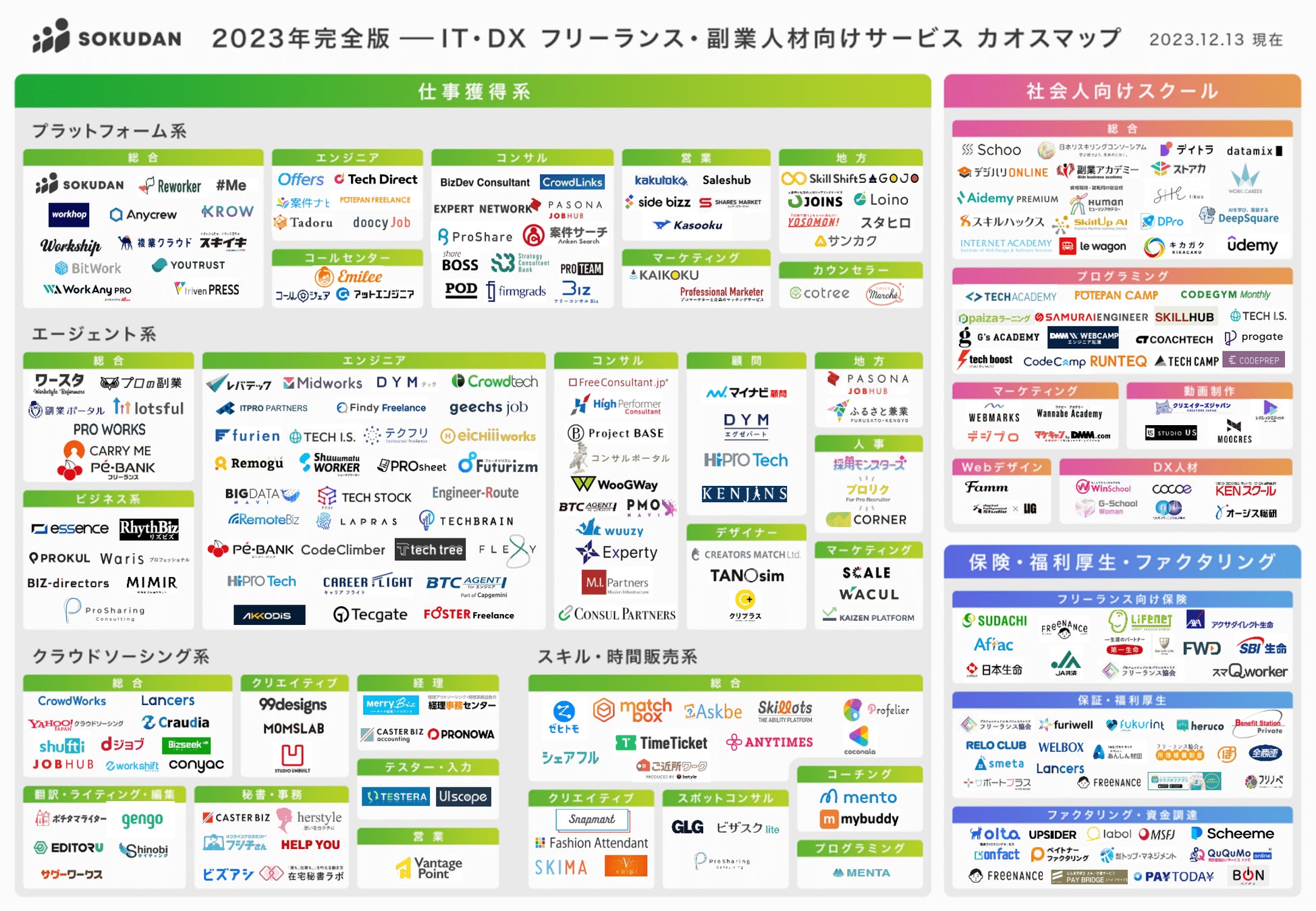 【2024年ここに注目!】国内No.1の「IT・DX フリーランス・副業向けサービスカオスマップ-2023年完全版」を公開 by SOKUDAN
