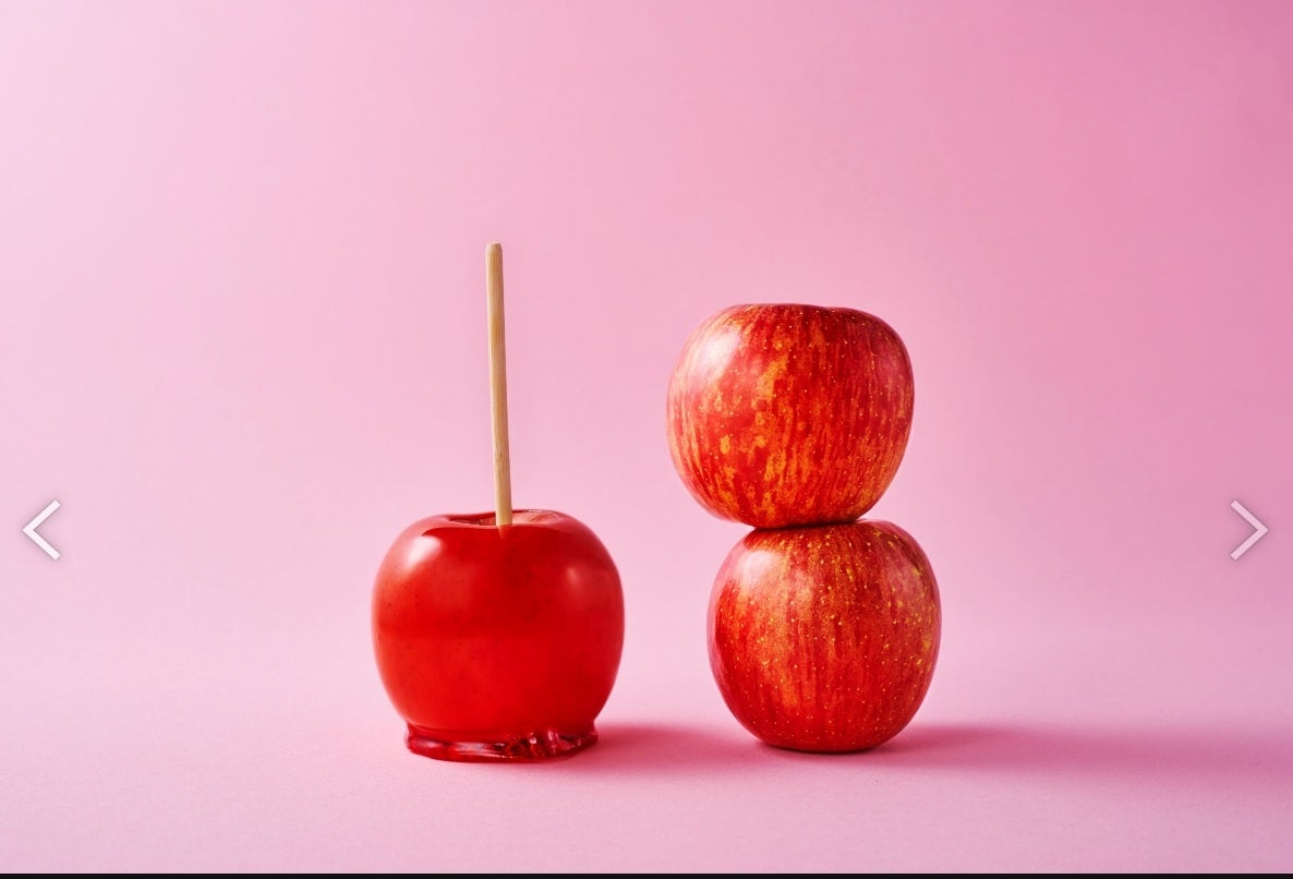 毎⽉その時期に合うブランドりんごを全国から取り寄せ、選別して作る本格りんご飴。りんごは「硬さ」「⽢さ」「酸味」「⾹り」「果汁」が、季節や産地によって全く異なるため、旬のりんごの旨味を最⼤限に引き出すための、飴作りの⼯程にもこだわりがあります。ジューシーな果汁を感じるりんごの⾷感と飴の⾷感に⼀体感が⽣まれるようにパリパリに仕上げ、飴は⼝の中で⼀瞬で溶け混ざり合うよう薄くコーティングしています。そのため⽢みの中に感じるりんご本来の酸味と⽢い⾹りが⼝いっぱいに広がります。