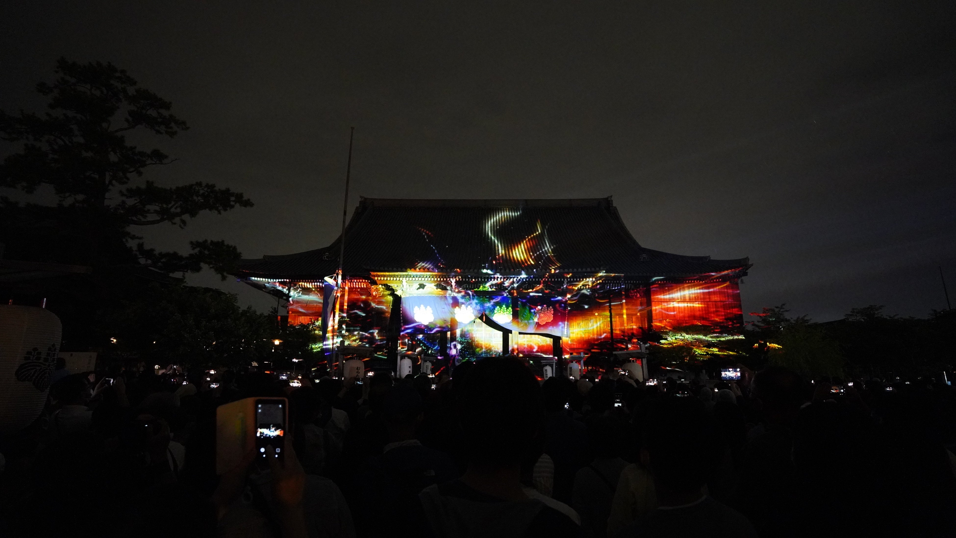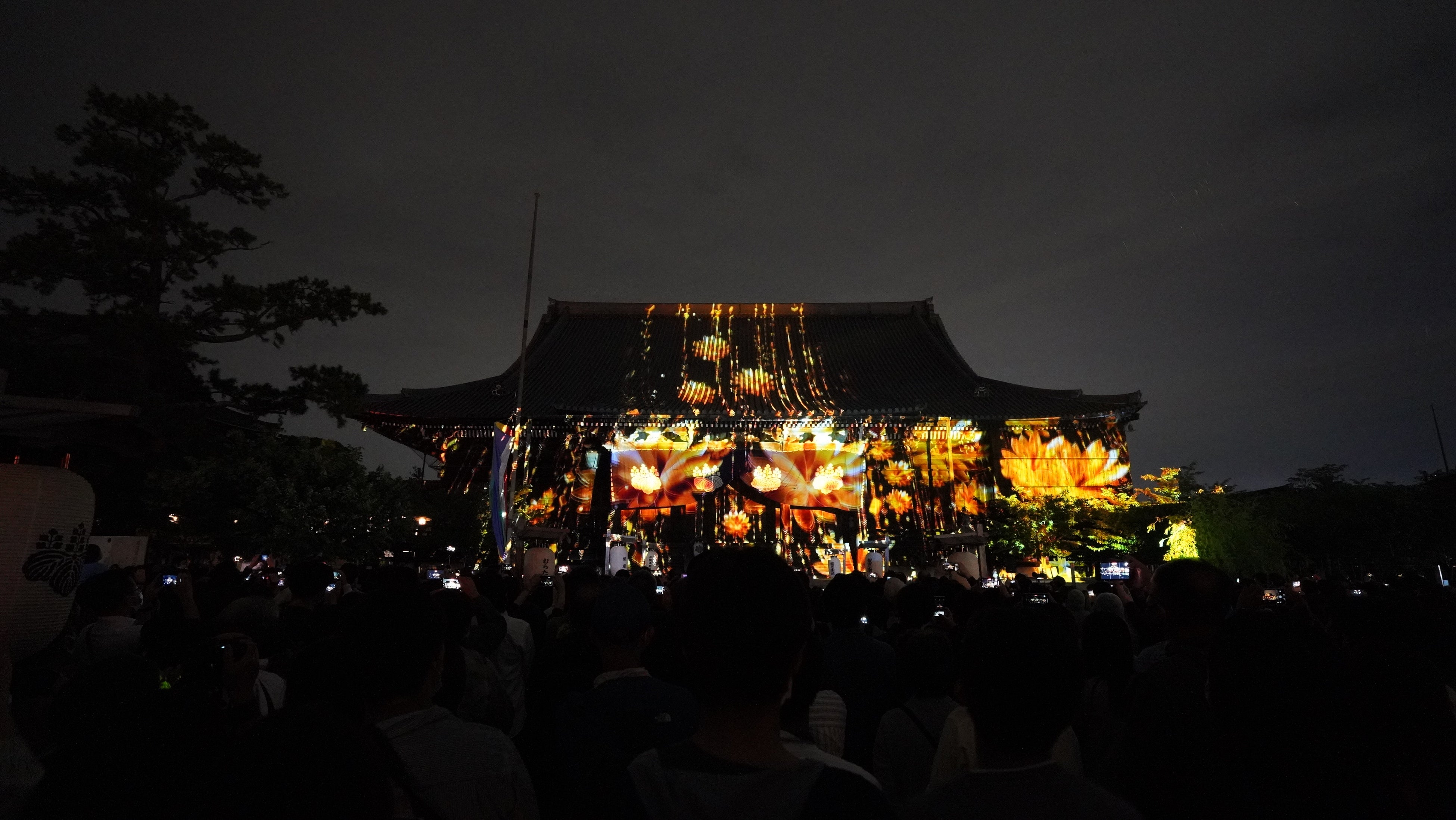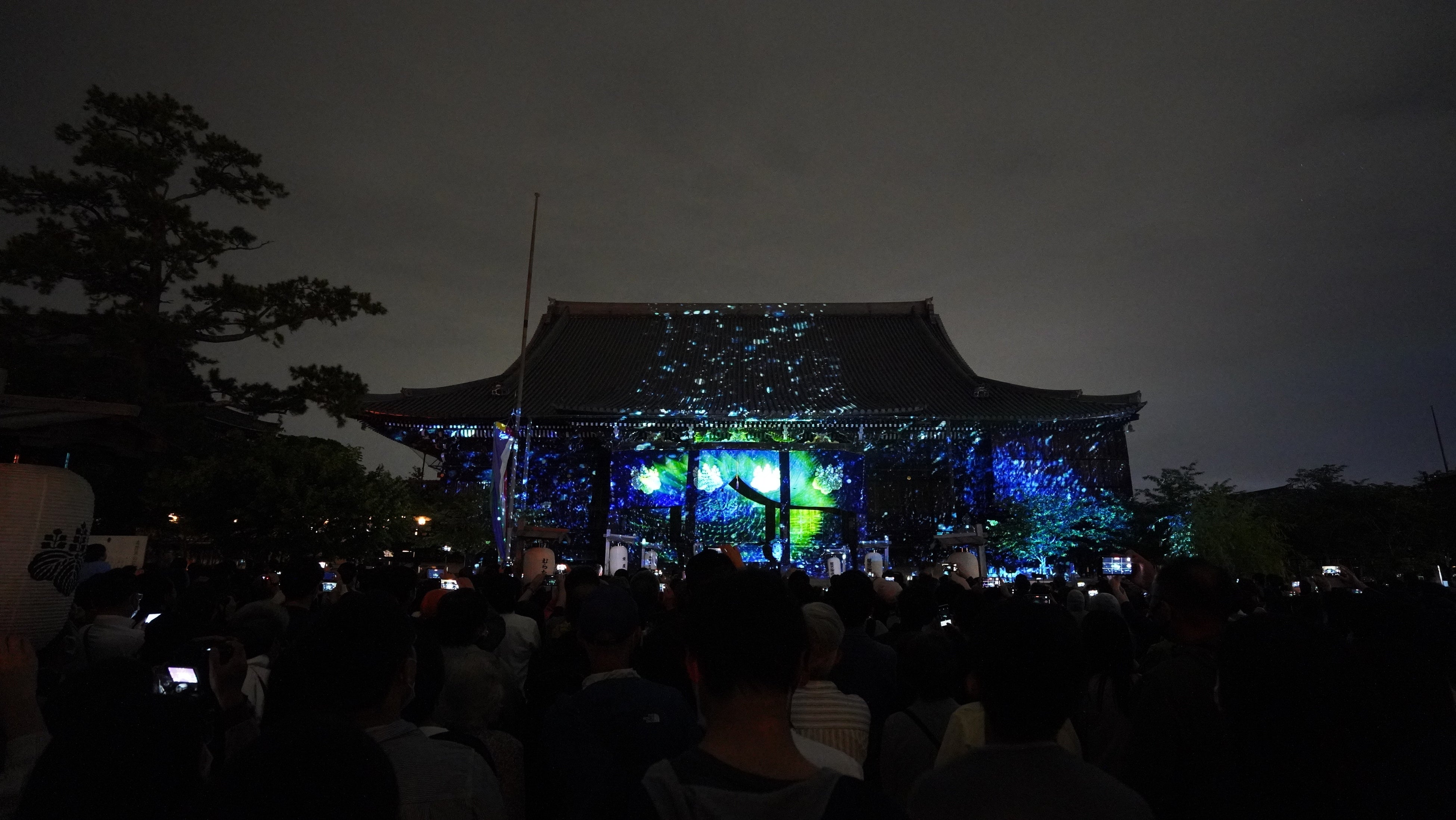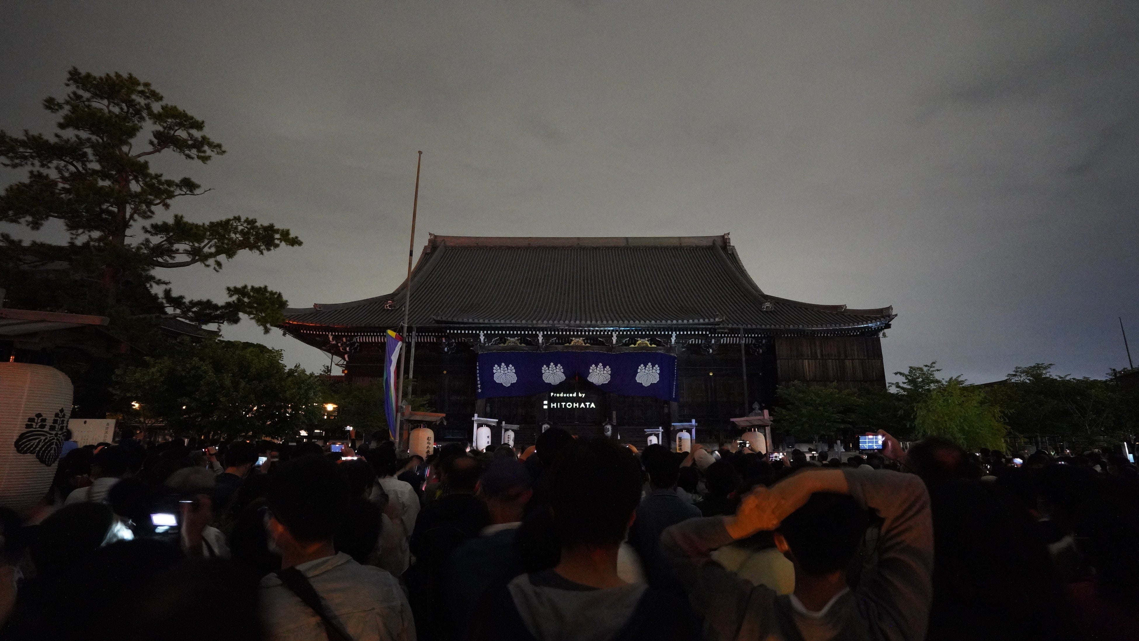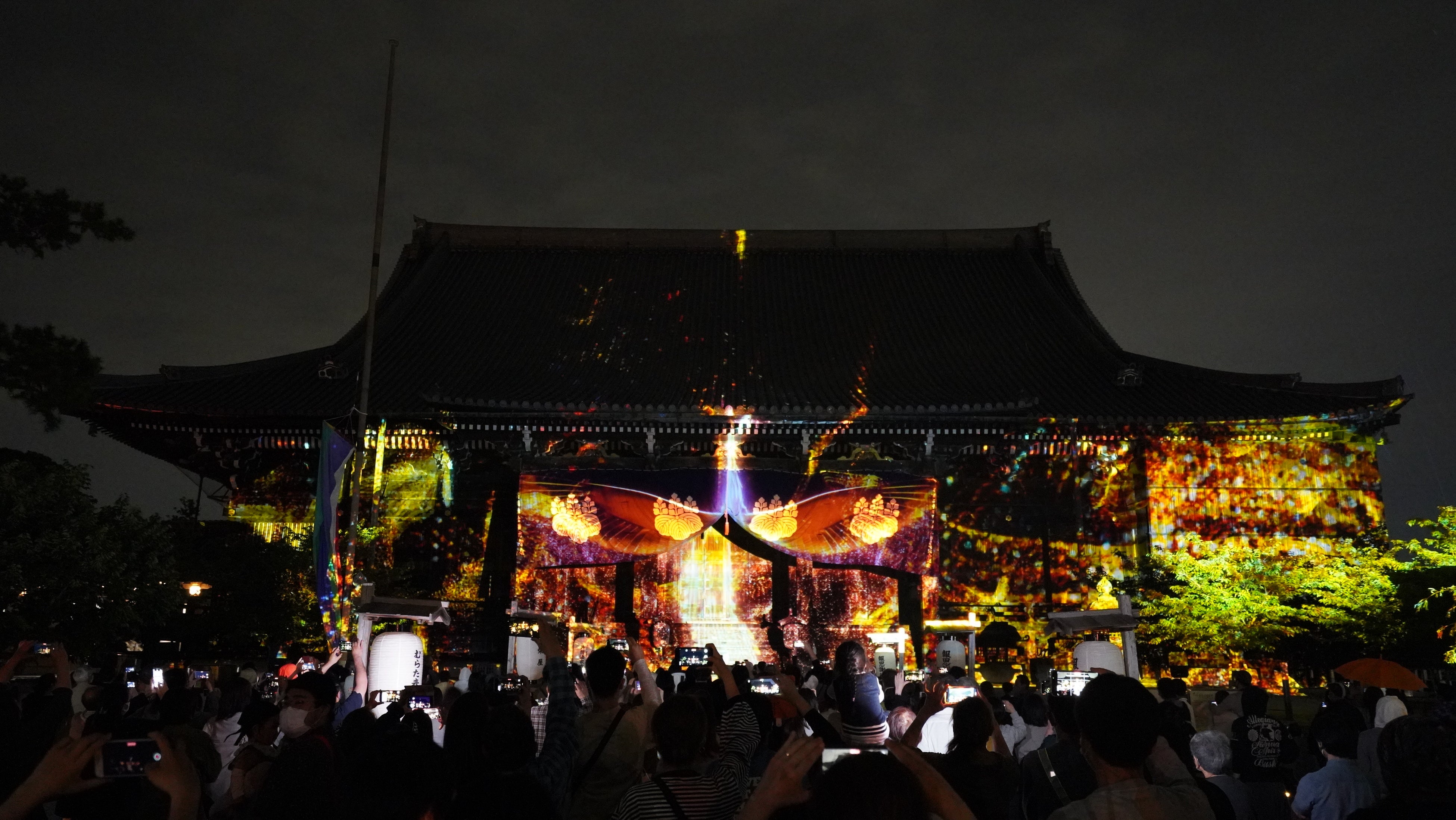 ※途中、御影堂に隣接する如来堂前での雅楽の演奏があるため、会場の演出の都合により両日とも約30分間投影を一時中断します。雅楽の演奏は19:00〜20:00の間を予定しています(前後する場合があります)。雅楽の演奏が終わり次第、投影を開始または再開します。