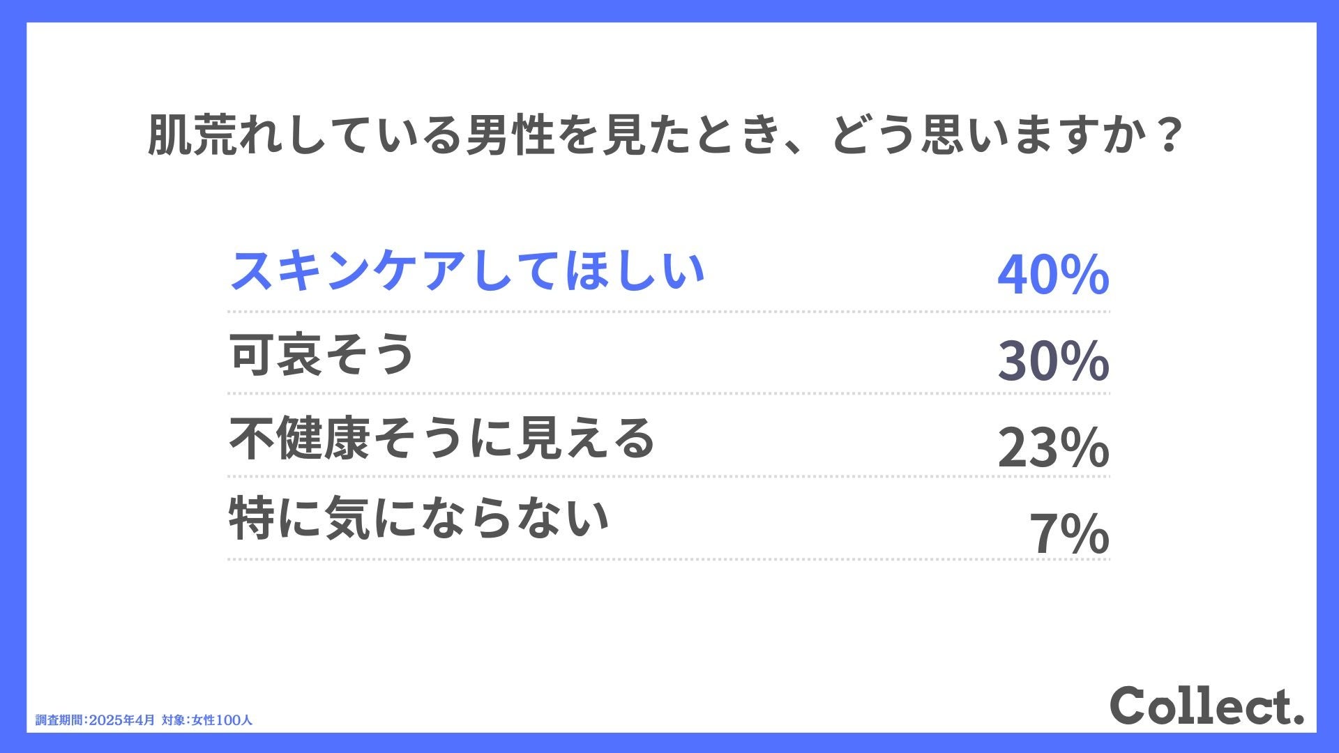 肌荒れ・ニキビ・毛穴…男性の肌トラブルはどう見られている?女性100人の本音を調査【Collect.(コレクト)】