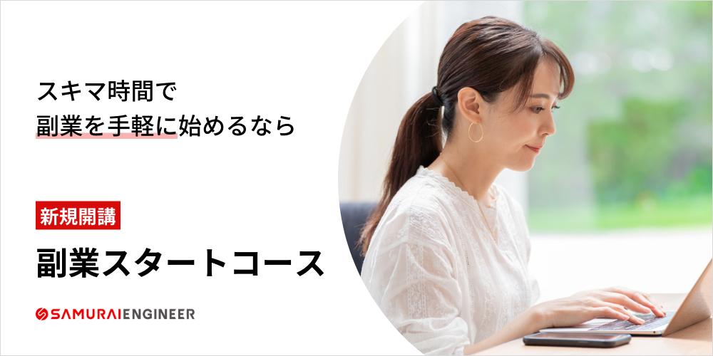 株式会社SAMURAI(本社所在地:東京都千代田区、代表取締役 :高比良 直人)は、プログラミングスクール「SAMURAI ENGINEER」内に、12週間でWeb制作スキルを習得し、案件を通じて収入獲得のノウハウを学ぶ「副業スタートコース」を開講しました。