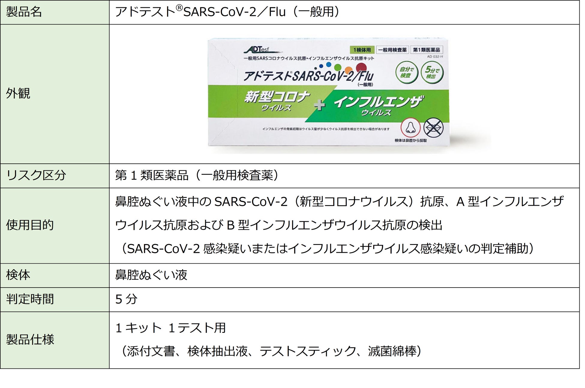 本契約に基づき、ウェルネス・コミュニケーションズが提携する医療機関や企業のお客様にシオノギヘルスケアが販売する新型コロナウイルスおよびインフルエンザ(A型・B型)感染症の一般用検査薬「アドテスト®SARS-CoV-2/Flu(一般用)」(以下「本検査薬」)をご案内していきます。