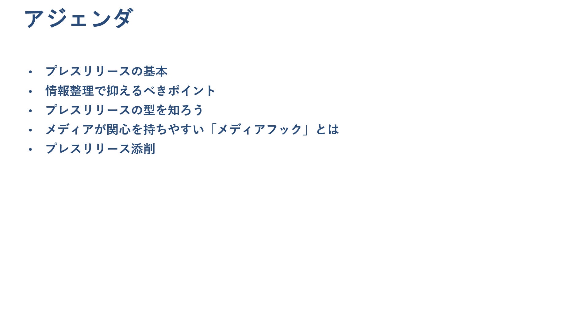 プレスリリースを発信する意義や基本的な構成といった概論についてご説明したほか、実際にこれまで発信されてきたプレスリリースの添削をおこなうことで、すぐに実践できる具体的なノウハウもお伝えしました。