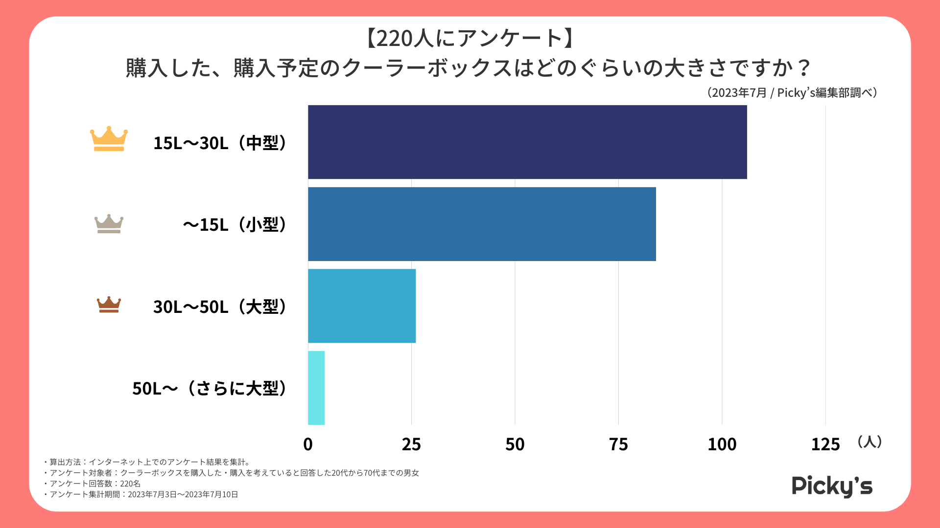 クーラーボックスを選ぶポイントとして2番目に多く選ばれた回答「サイズ」。