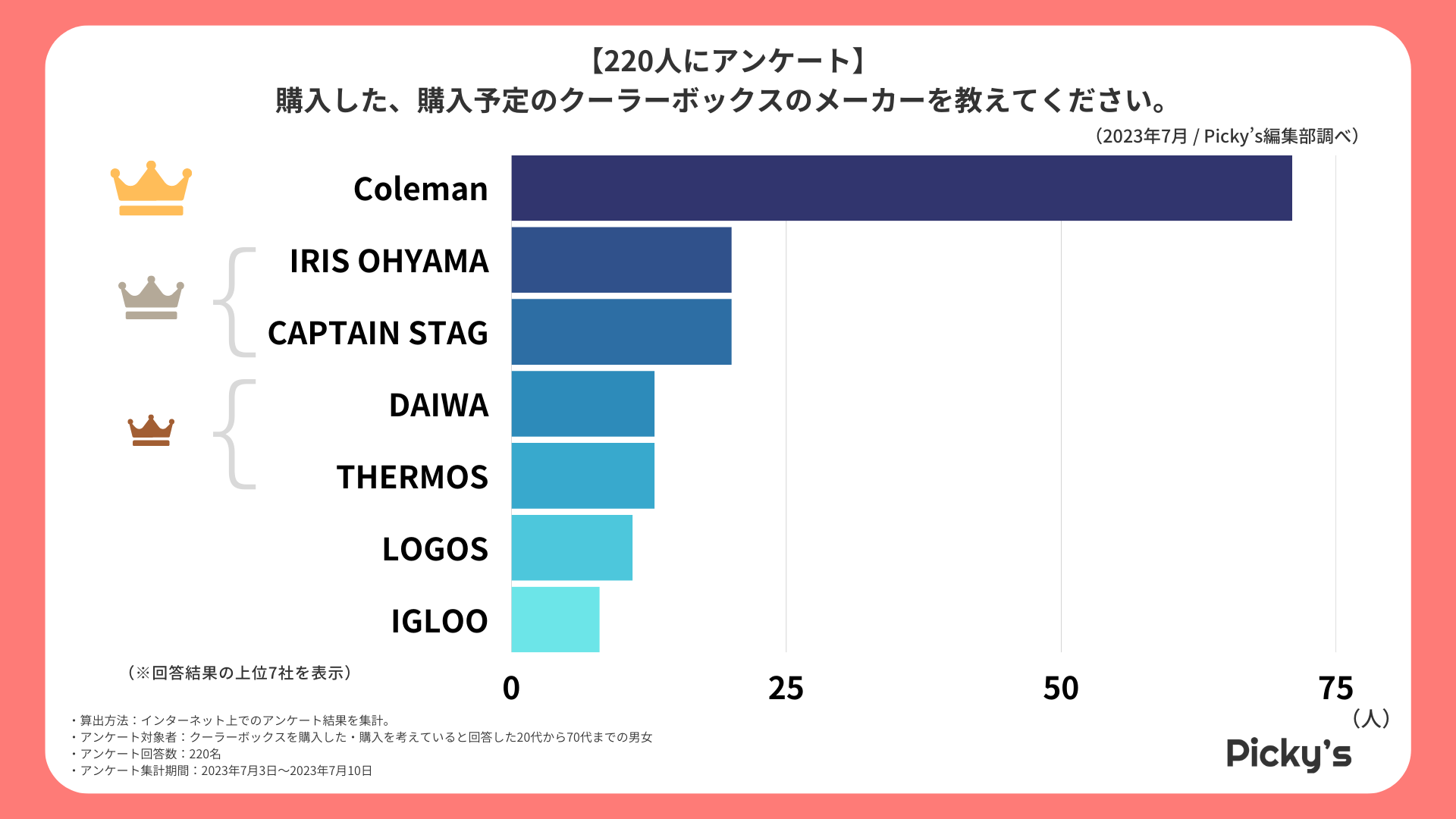 「Picky’s」は、インターネットショッピングにおいて、購入前に試せない・選ぶべきものがわからないという課題の解決を目標に、あらゆる商品のおすすめランキングや検証レビューを紹介するサイトです。このたびPicky’s(https://rentry.jp/note/)では、夏需要に先駆けて、クーラーボックスについてインターネット上でアンケート調査を行いましたので発表いたします。