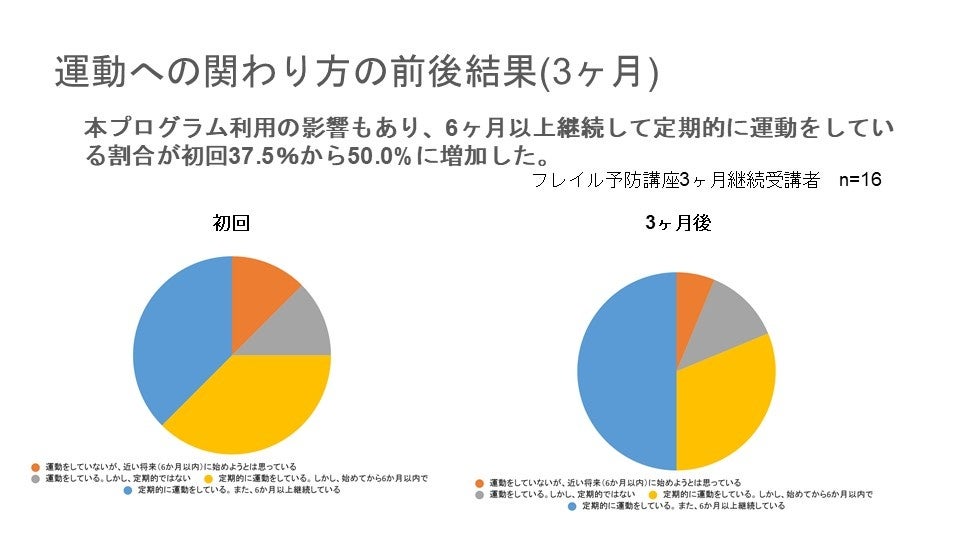 ・6ヶ月以上継続して運動している割合:37.5% → 50.0%