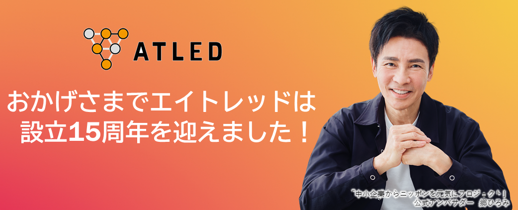 エイトレッド設立15(じゅうGO)周年ということで、認知度のある郷ひろみ氏(「中小企業からニッポンを元気にプロジェクト」公式アンバサダー)の力を借りて積極的にPR活動を展開していくとともに、さらなる事業発展のためにパートナー様と力を合わせて、業務効率の見直しやスピーディーな経営を求めるお客様のために、ワークフローDXによる課題解決や業務改革を実現できるよう努めてまいります。