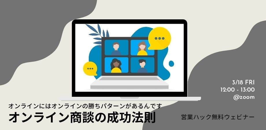 【3/18(金)12時〜】オンライン商談の成功法則をお話します|ランチタイムウェビナー開催