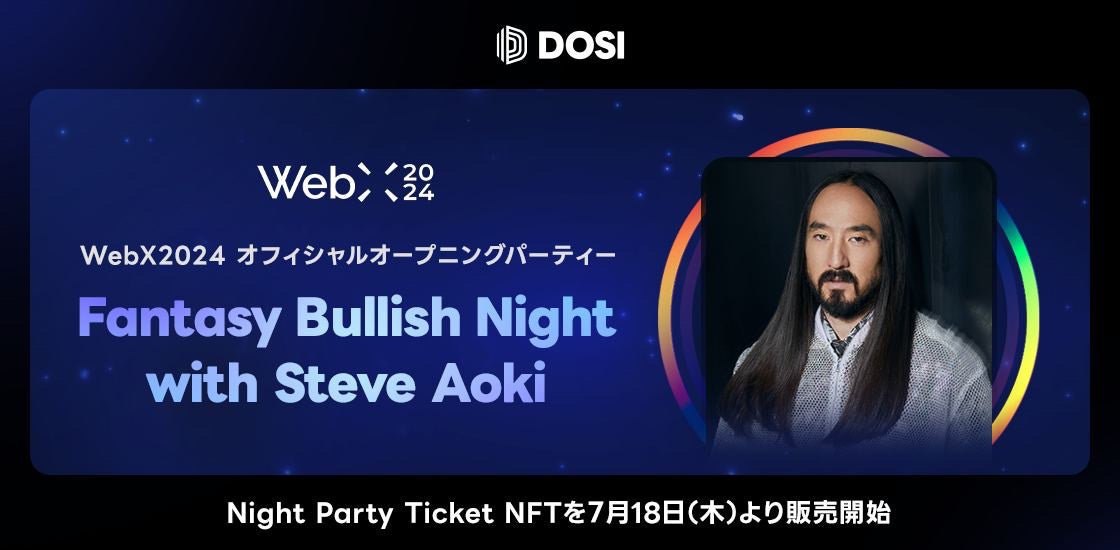 世界的DJSteve Aokiが来日!7月18日(木)より「DOSI」にてNight Party Ticket NFTを販売開始!ミート&グリートやプライベートディナーを楽しめる豪華特別プランも!