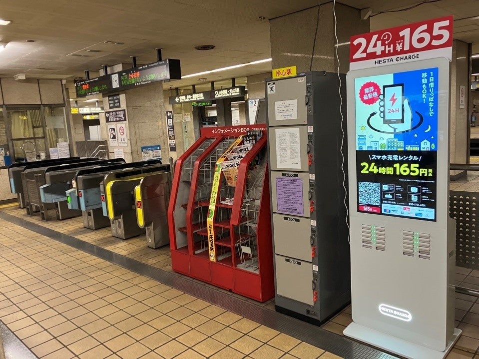 HESTAチャージは、「スマホの充電問題はこれで解決」をコンセプトに、2021年12月からサービス提供を開始し、全国のショッピングモールや飲食店、公共施設、レジャー施設などを中心に設置を拡大しており、スマートフォンの充電問題を解決するだけでなく、災害時にはバッテリーの無償貸出や、避難・災害情報を発信する手段としてもご活用いただけます。