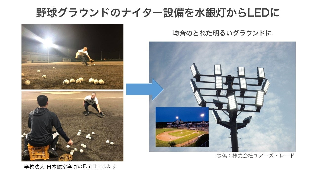 北陸銀行の紹介により野球部グラウンドのナイター設備のLED化を実施