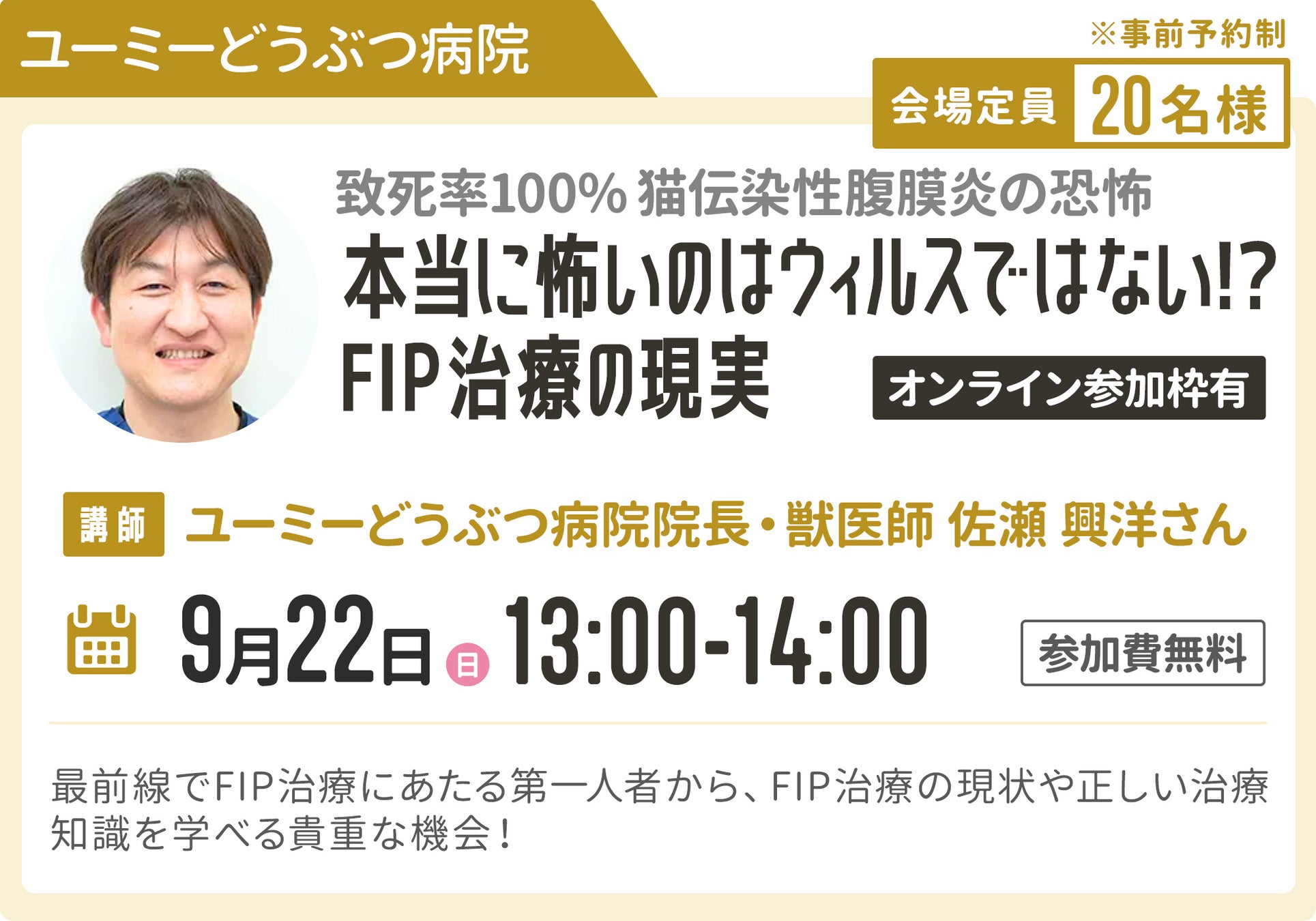 イベントでは、こんなに素敵な空間をデザインしてくださった清水さんのスペシャルセミナーも開催予定!猫ちゃんとの暮らしで生まれる様々な疑問にもお応えいただける予定です。さらに、ユーミーどうぶつ病院院長 佐瀬 興洋さんをお招きしたFIPセミナーも開催。ご予約者限定公開のYouTubeライブも配信いたしますので、遠方の方もぜひお申し込みください。
