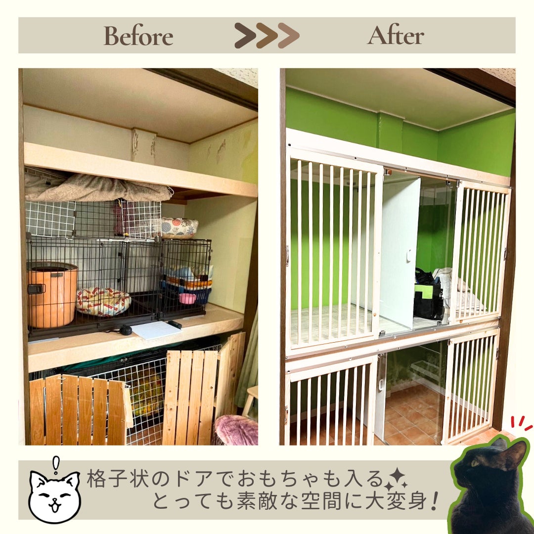 新しい環境に慣れていく猫ちゃんと距離を縮めるのにピッタリなスペースへと生まれ変わりました!
