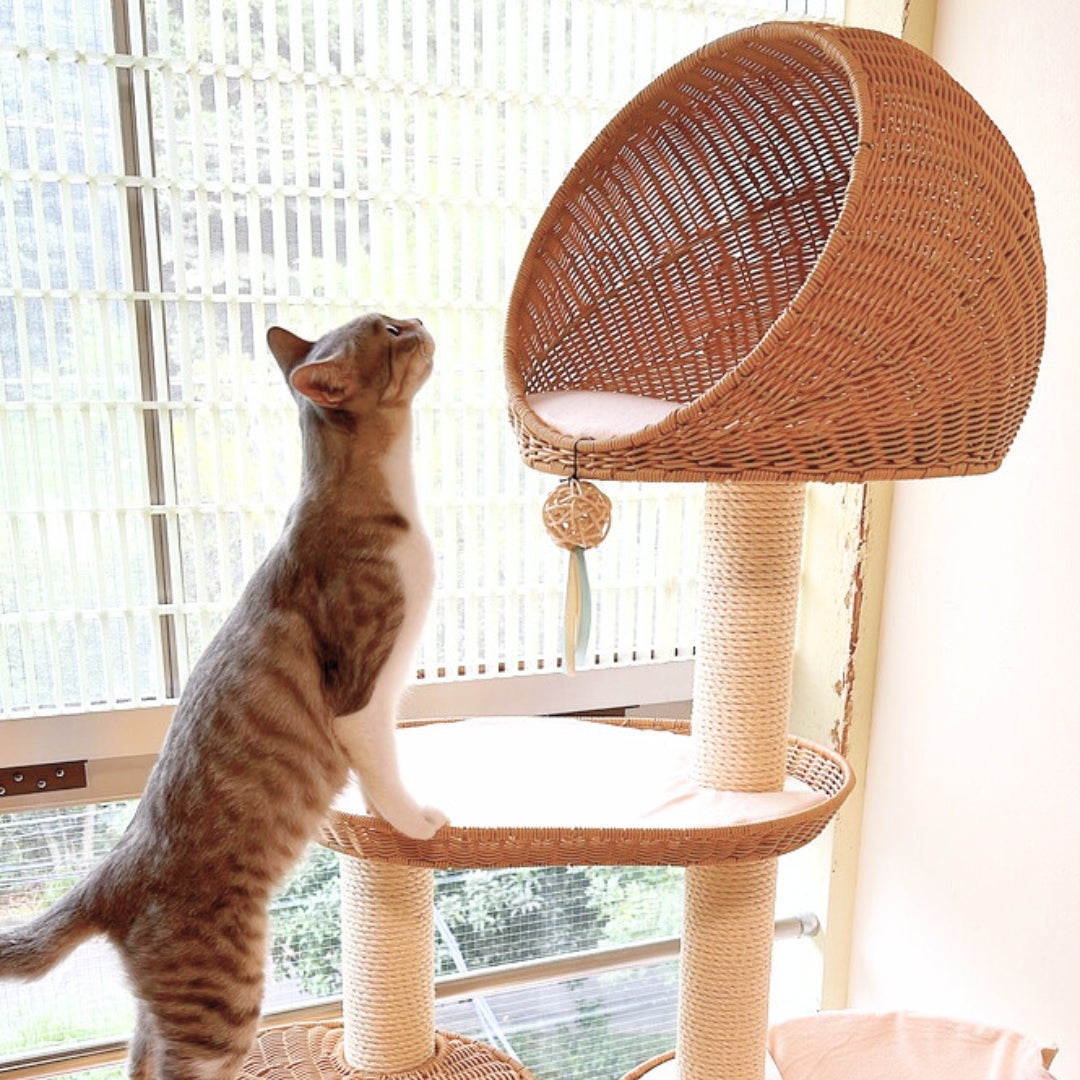 もちろん、SUMIKAのキャットタワーやベッドも仲間入り。キャットウォークへの導線としても活躍しているので、ぜひ猫ちゃんが楽しく使う様子を見にきてくださいね。