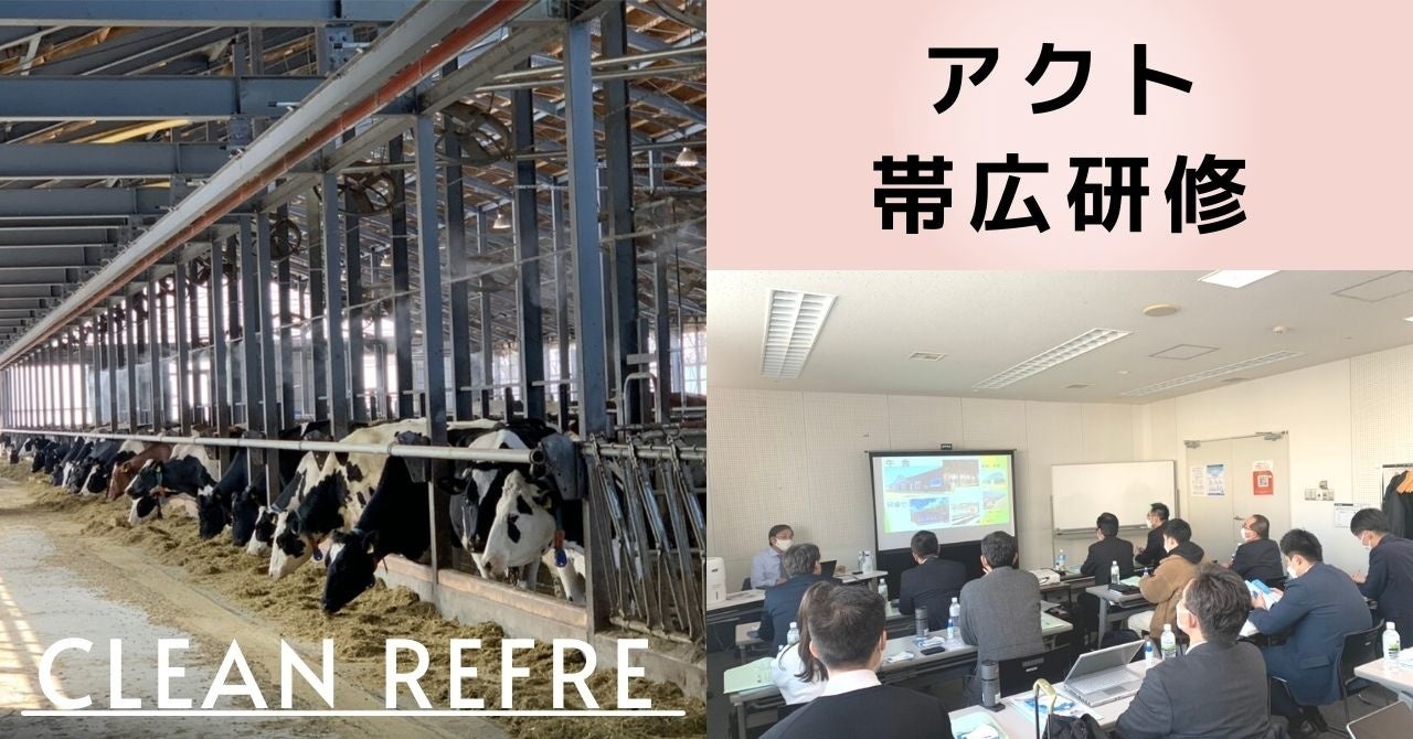 1日目:内海洋氏勉強会 クリーン・リフレ開発元の内海洋氏に登壇いただきクリーン・リフレや除菌水について勉強会を開催し、クリーン・リフレの効果や活用事例などを勉強しました。 2日目:佐藤牧場見学 クリーン・リフレを実際に活用して成果を上げている佐藤牧場を見学しました。佐藤牧場は少ない人数で運営しながらも、クリーン・リフレを活用して牛が感染症にかかりにくい環境づくりを行い注目を集めています。 2日間の座学と牧場見学で、クリーン・リフレ効果や性質を学びながら活用現場のベンチマーキングを行い、自社への展開を行っていきます。
