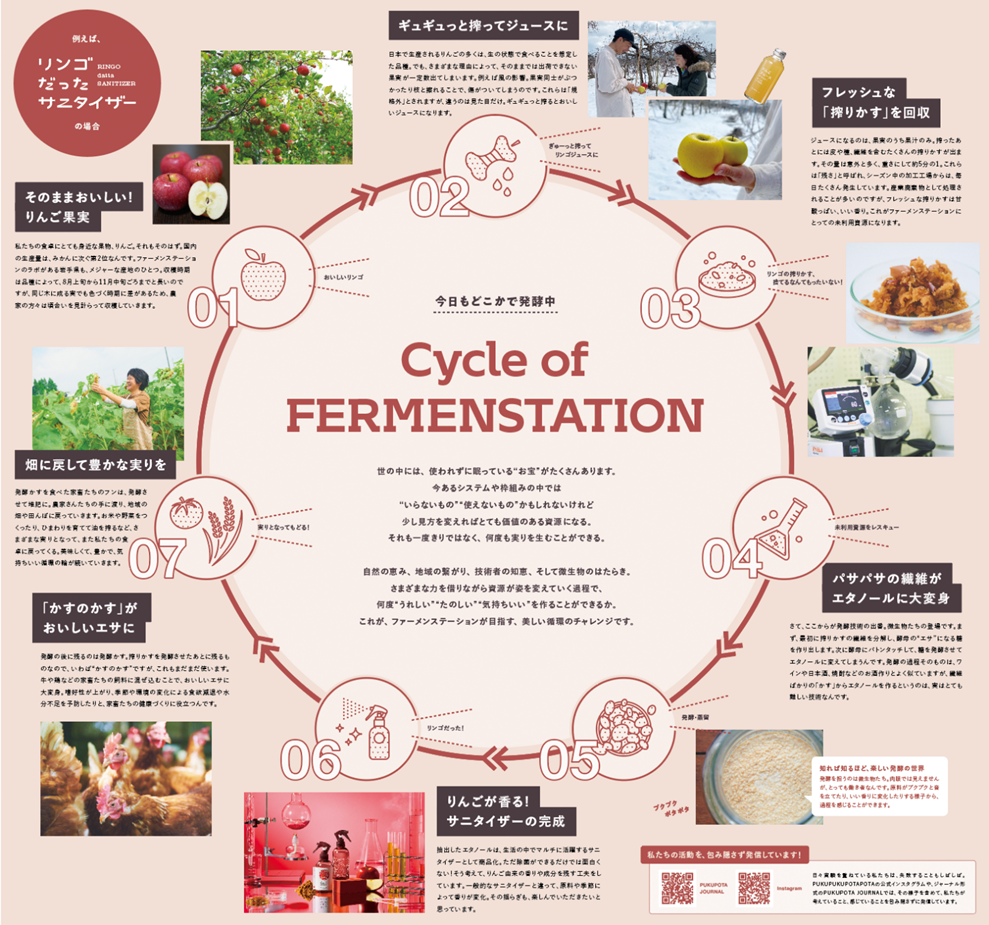 ファーメンステーションの日々の取り組みは、「PUKUPUKU POTAPOTA」(略してプクポタ)というプロジェクトで包み隠さず発信しています。(原料が発酵する際のプクプクと泡立つ有機的な姿と、蒸留されしずかにポタポタと落ちていく様子から名づけました)