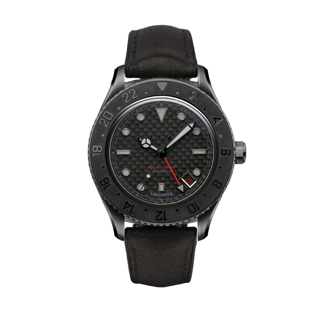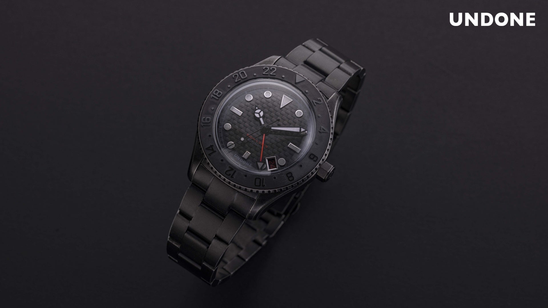 特別なベースキャンプコレクションとなるようケースにはIPブラックでヴィンテージ加工を施し、控えめながらも堂々たるデザインに仕上げました。