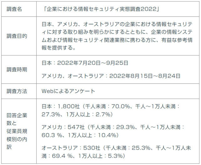 NRIセキュア、日・米・豪の3か国で「企業における情報セキュリティ実態調査2022」を実施